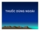 Bài giảng Thuốc dùng ngoài trình bày cơ sở phân loại, tính chất chung của thuốc dùng ngoài, tên khoa học và hoạt chất của các vị thuốc dùng ngoài; trình bày công năng, chủ trị, liều dùng của các vị thuốc dùng ngoài, liệt kê các vị thuốc dùng ngoài.