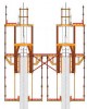 - lại cung cấp hệ khuôn leo MF240 và 4.900 ft vuông ván khuôn Top 50 đã được lắp đặt., được nâng cấp với hệ giàn đỡ đặc biệt nhằm hạn chế các mối nối ướt ván khuôn đối với các mẻ đổ bê tông cao tới 15 feet 6 inch. Tiết kiệm lao động Phương án nâng cấp hệ ván khuôn tiêu chuẩn Top 50 với hệ giàn đỡ tiết kiệm kiệm cho nhà thầu việc lắp đặt gần 320 mối nối ướt đối với mỗi 18 lần nâng. Tổng số gồm 5760 mối nối ướt, tiết kiệm được chi phí lao động đáng kể cho nhà thầu, khiến cho hệ Top 50 trở thành hệ ván khuôn kinh tế nhất dành cho công việc đầy thách thức này. Hệ khuôn leo MF240 cho phép tháo dỡ, làm sạch và chuẩn bị ván khuôn để sử dụng lại tại chỗ. Cần cẩu chỉ nâng ván khuôn lên cấp tiếp theo. Mỗi thao tác chỉ mất một nửa ngày lao động. Mỗi mẻ đổ điển hình cho cột tháp phía trên cao tới 15 feet 6 inch và bê tông được đổ theo chu trình tuần. Các sàn thao tác của MF240 rộng 8 feet tạo cho công nhân một không gian hoạt động tốt tăng độ an toàn cần thiết khi làm việc ở độ cao hàng trăm feet. Nâng cấp hệ ván khuôn tiêu chuẩn Top 50 với giàn đỡ tiết kiệm cho nhà thầu lắp đặt gần 320 mối nối ướt đối với mỗi 18 lần nâng Lắp đặt cáp treo Do tiến độ thi công eo hẹp mà các cáp chịu lực sẽ được lắp đặt khi đang thi công các đoạn trên của cột tháp. Do thời gian cẩu và lối vào bị hạn chế, nên đòi hỏi áp dụng giải pháp tự leo(self-climbing) , cho phép lối vào gần tới khung lồng cáp, trong khi đó neo xung quanh các cáp chịu lực đã lắp đặt từ trước. Nhà thầu đã chọn hệ khuôn leo SKE 50 của DOKA kết hợp với các sàn thao tác ống lồng. 2