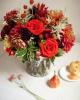Cắm lọ hoa hồng ấm áp ngày đông Hoa hồng đỏ chủ đạo xen kẽ bên những bông hoa nhỏ khác cùng tông màu, bạn sẽ có một lọ hoa trông thật ấm áp và ngập tràn hạnh phúc trang trí phòng ngày đông bớt giá.