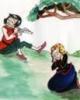 - Tối đến, không thấy anh về, vợ anh lo sợ, đâm bổ đi tìm. Chợt nghĩ đến chồng thường nói phải đề phòng con nam ám hại, không đến gần ao, chị ngờ ngay đến chuyện xảy ra. Chị chạy đến ao, thấy túi đi săn của chồng, biết chắc là chồng đã bị nạn. Chị vật mình than khóc, gào tên người yêu, nhưng thật uổng công. Chị lại chạy sang bờ ao bên kia, gọi chồng, la mắng con nam, nhưng không có tiếng đáp lại. Chỉ có nửa vành trăng sáng soi trên mặt nươc im lìm. Tội nghiệp người vợ cứ ở bờ ao, lúc thì kêu gào thảm thiết, lúc thì khe khẽ rên rỉ. Mãi sau kiệt sức, chị ngã xuống đất và ngủ thiếp đi. Chị nằm mơ thấy mình đang trèo núi, trong lòng lo sợ. Hai bên là đá tảng cực lớn, chân dẫm phải đá sắc và gai chảy máu, mưa đập vào mặt, gió ào ào thổi tung mớ tóc dài. Khi đến đỉnh núi thì thấy phong cảnh khác hẳn. Bầu trời xanh biếc, không khí êm dịu, sườn núi thoai thoải. Trên cánh đồng cỏ xanh, muôn hoa đua sắc, có một túp lều xinh xinh. Chị đến gần, mở cửa, chỉ thấy một bà cụ già tóc bạc thân mật vẫy chị. Đúng lúc ấy, chị thức giấc. Trời đã sáng. Chị nhất định làm theo giấc mộng. Chị ra sức trèo núi, quả nhiên thấy y như đêm qua. Bà lão tiếp chị thân mật, và trỏ ghế mời chị ngồi, rồi nói: - Chắc con đã gặp nạn nên mới phải tìm đến chiếc lều hẻo lánh của ta. Chị vừa khóc vừa kể lại sự việc đã xảy ra. Bà lão nói: - Thôi con đừng khóc nữa, ta sẽ giúp con. Đây ta cho con một cái lược vàng. Con chờ khi trăng tròn thì đến ngồi bên bờ ao, lấy lược này ra mà chải tóc mây. Chải xong, con để lược đó, thì sẽ có chuyện lạ xảy ra.