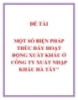 - Generated by Foxit PDF Creator © Foxit Software http://www.foxitsoftware.com For evaluation only. Khoa QTDN Th¬ng m¹i Chuyªn ®Ò tèt nghiÖp Lêi nãi ®Çu Qua 10 n¨m ®æi míi, nÒn kinh tÕ níc ta ®· cã nh÷ng chuyÓn biÕn vµ ®¹t ®îc nh÷ng thµnh tùu quan träng. Tuy nhiªn, ®Õn nay níc ta vÉn lµ mét níc n«ng nghiÖp l¹c hËu, c«ng nghiÖp cßn nhá bÐ. Muèn ®¹t ®îc môc tiªu d©n giÇu, níc m¹nh, x· héi c«ng b»ng v¨n minh tÊt yÕu ph¶i ®Èy tíi bíc míi CNH - H§H. C«ng nghiÖp ho¸ lµ thùc chÊt x©y dùng c¬ së vËt chÊt kü thuËt cña XHCN. §ã kh«ng chØ lµ t¨ng nhanh tèc ®é vµ tû träng cña s¶n xuÊt c«ng nghiÖp trong GDP mµ cßn lµ qu¸ tr×nh chuyÓn dÞch c¬ cÊu kinh tÕ g¾n víi ®æi míi c¬ b¶n vÒ kü thuËt vµ c«ng nghÖ, hiÖn ®¹i ho¸ c¸c ngµnh kinh tÕ quèc d©n , t¹o c¬ së cho sù t¨ng trëng nhanh , ®¹t hiÖu qu¶ cao vµ l©u dµi cña toµn bé nÒn kinh tÕ quèc d©n . Chóng ta ®Òu biÕt r»ng, ho¹t ®éng xuÊt khÈu cã vai trß hÕt søc quan träng ®èi víi sù ph¸t triÓn kinh tÕ cña mçi quèc gia. §èi víi ViÖt Nam, xuÊt khÈu hµng ho¸ ®ang trë thµnh mét vÊn ®Ò hÕt søc cÊp thiÕt cho sù nghiÖp c«ng nghiÖp ho¸ - hiÖn ®¹i ho¸ ®Êt níc, còng nh gãp phÇn n©ng cao ®êi sèng nh©n d©n. Th«ng qua ho¹t ®éng xuÊt khÈu, ViÖt Nam cã thÓ tËn dông ®îc c¸c tiÒm n¨ng s½n cã ®Ó s¶n xuÊt ra c¸c lo¹i hµng ho¸ phôc vô cho viÖc trao ®æi, bu«n b¸n víi c¸c quèc gia kh¸c ®Ó thu ngo¹i tÖ. Víi ngo¹i tÖ thu ®îc tõ ho¹t ®éng xuÊt khÈu, chóng ta cã thÓ mua s¾m c¸c lo¹i hµng ho¸ cÇn thiÕt tõ c¸c níc trªn thÕ giíi nh»m phôc vô cho qu¸ tr×nh C«ng nghiÖp ho¸- hiÖn ®¹i ho¸ còng nh tháa m·n c¸c nhu cÇu sinh ho¹t cña d©n c. ChÝnh v× vËy, §¹i héi §¶ng lÇn thø VI ®· ®a viÖc s¶n xuÊt hµng xuÊt khÈu lµ mét trong ba ch¬ng tr×nh kinh tÕ quan träng trong thêi kú ®æi míi cña níc ta (ba ch¬ng tr×nh ®ã lµ: s¶n xuÊt l¬ng thùc, s¶n xuÊt hµng tiªu dïng vµ s¶n xuÊt hµng xuÊt khÈu ). Tõ ®ã ®Õn nay, vÊn ®Ò s¶n xuÊt hµng xuÊt khÈu còng nh c¸c ho¹t ®éng liªn quan ®Õn xuÊt khÈu hµng ho¸ ë ViÖt Nam ®ang trë thµnh mét vÊn ®Ò ®îc nhiÒu ngêi quan t©m víi môc ®Ých t×m ra c¸c biÖn ph¸p h÷u hiÖu nhÊt ®Ó ®a ho¹t ®éng xuÊt khÈu cña ViÖt Nam ngµy cµng cã hiÖu qu¶. Bëi v×, thùc tiÔn ho¹t ®éng xuÊt khÈu ë ViÖt Nam cho thÊy, bªn c¹nh mét sè thµnh tùu ®· ®¹t ®îc, chóng ta còng ®ang gÆp kh«ng Ýt nh÷ng khã kh¨n trong ho¹t ®éng nµy. Qua thêi gian häc tËp t¹i trêng, víi sù hiÓu biÕt cña m×nh cïng víi sù gióp ®ì cña thÇy c« gi¸o, em ®· nghiªn cøu ®Ò tµi Mét sè BiÖn ph¸p 1 Ph¹m Thµnh H¶i K33 - A6