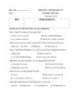 - Họ và tên : ............................. KIỂM TRA 1 TIẾT HK2 ĐỊA LÍ 7 Lớp : .... NĂM HỌC: 2019-2020 Thời gian: 45 phút. Điểm Lời phê của giáo viên. Khoanh tròn chỉ một chữ cái đầu ý em cho là đúng nhất: Câu 1: Châu Mĩ có những nền văn minh cổ đại: A. Mai-a, In-ca, A-xơ-tếch. B. Mai-a, sông Nin, Đông Sơn. C. In-ca, Mai-an, sông Nin. D. Hoàng Hà, A-xơ-tếch, sông Nin. Câu 2 Nguyên nhân làm cho khu vực Bắc Mỹ có nhiều sự phân hóa khí hậu là do: A. Địa hình. B. Vĩ độ. C. Hướng gió. D. Thảm thực vật. Câu 3. Vùng đất Bắc Mĩ thường bị các khối khí nóng ẩm xâm nhập gây bão, lũ lớn là: A. Đồng bằng. B. Miền núi phía tây. C. Ven biển Thái Bình Dương. D. Khu vực phía bắc Hồ Lớn. Câu: 4 Khu vực chứa nhiều đồng, vàng và quặng đa kim ở Bắc Mĩ là: A. Vùng núi cổ A-pa-lát. B. Vùng núi trẻ Coóc-đi-e. C. Đồng bằng Trung tâm. D. Khu vực phía Nam Hồ Lớn. Câu: 5 Hai khu vực thưa dân nhất Bắc Mĩ là: A. Alaxca . B. Bắc Canada và Tây Hoa Kỳ B. C. Tây Hoa Kì và Mê-hi-cô. D. Mê-hi-cô và Alaxca. Câu: 6 Quá trình đô thị hóa ở Bắc Mĩ gắng liền với quá trình: A. Di dân. B. Chiến tranh. C. Công nghiệp hóa. D. Tác động thiên tai.
