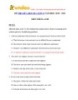 - VnDoc - Tải tài liệu, văn bản pháp luật, biểu mẫu miễn phí A. by B. of C. on D. in 19. I have warned you _________ the difficulties you have to face when applying for the job. A. about B. on C. of D. for 20. His company is far from his house, _______ he goes to work by bus. A. but B. so C. because D. however 21. That pop star, ________ name is on everyone’s lips, is organizing an international charity. A. of whom B. his C. whom D. whose 22. You ____ smoke in the office. A. needn’t B. must C. need to D. mustn’t 23. A new school for disable children ________ here next month. A. will be build B. will build C. will be built D. will be building 24. The car needs ________ as it does not work now. A. to repair B. to repaired C. repairing D. to be repair 25. “I am sure you broke my vase, Jim” Mary said. ---------This sentence also means: A. Mary said she knew that Jim broke her vase. B. Mary accused Jim of having broken her vase. C. Mary asked him if he had broken her vase. D. Mary told him to break her vase. 26. - “Would you like to go out for a drink with me?” - “Yes, __________.” A. I like B. I go C. I can’t D. I’d love to. 27. - “Would you mind lending me your dictionary?” - “__________.” A. Yes, here it is B. Not at all C. Yes, let’s D. Great Read the passage carefully and choose the correct answer: