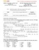 - VnDoc - Tải tài liệu, văn bản pháp luật, biểu mẫu miễn phí II. Choose the word in each group which has the main stress on a different syllable from the others (0,2x5=1.0 pt) 1/ A. accident B. indicator C. magnificent D. longitude 2/ A. despite B. dislike C. despair D. distance 3/ A. chemistry B. physics C. geography D. literature 4/ A. injury B. intend C. income D. interest 5/ A. spontaneous B. secondary C. honesty D. monarchy PART THREE: VOCABULARY AND GRAMMAR (6.5 pts) I. Circle best option A, B, C or D to complete the following sentences. (0.1x15=1,5 pts) 1. His parents died when he was very young so he was ………….…………..by an aunt. A. grown up B. taken care C. taken after D. brought up 2. It was very………….…………..of you to lend us your car for the whole week. A. generous B. ambitious C. modest D. thoughtless 3. I’m going to take a couple of days………….…..…..next month to help my sister move house. A. over B. off C. out D. up 4. I’m surprising the performance went so well after only three………….………….. A. auditions B. applauses C. rehearsals D. directions 5. If he ………….…………..more slowly, he would have been able to stop. A. had been driving B. has driven C. drove D. didn’t drive 6. ………….…………..I’m eating less than usual, I still seem to be gaining weight. A. Because B. If C. Unless D. Although 7. Susan………….…………..as a nurse for three years before her marriage. A. worked B. is working C. has worked D. has been working 8. The police questioned me at some length and I didn’t enjoy………….………….. A. to question B. questioning C. being questioned D. to be questioned 9. You need to talk to a person……………………..you can trust. You will feel better if you do. A. whose B. which C. whom D. Ø 10. We shall have to………….…………..the meeting until next weekend, I’m afraid. A. reorganize B. forward C. replace D. postpone 11. The air is not as pure as it …………………… A. used to be B. is used to be C. is used to being D. was used to be 12. The politician ……………………to admit that he had done anything wrong. A. accepted B. denied C. explained D. refused 13. I wanted some tea but there was……………………left in the pot. A. none B. nothing C. any D. no 2
