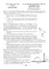 - SỞ GIÁO DỤC VÀ ĐÀO TẠO KỲ THI CHỌN HỌC SINH GIỎI TỈNH CẤP THPT HÀ TĨNH NĂM HỌC 2012 2013 Môn thi: VẬT LÝ – lớp 10 ĐỀ CHÍNH THỨC Thời gian làm bài 180 phút (Đề thi có 01 trang, gồm 05 câu) Câu 1: Trên cùng một đường thẳng đứng, người ta ném đồng thời hai vật theo phương ngang. Vật A ở độ cao h1 và vật B ở độ cao h2 (so với sàn nằm ngang) với các vận tốc ban đầu tương ứng là v01 và v02. Bỏ qua mọi lực cản. Lấy g = 10 m/s2. a. Cho h1 = 80 m và v01 = 10 m/s. Viết phương trình quỹ đạo của vật A. Tìm khoảng cách từ vị trí ném vật A đến điểm mà vật A chạm sàn lần đầu tiên. b. Vật B va chạm đàn hồi với sàn, nẩy lên và rơi xuống sàn lần thứ hai cùng một vị trí và cùng thời điểm với vật A chạm sàn lần đầu tiên. Tìm v01 h1 tỷ số và . v02 h2 Câu 2: Con lắc đơn gồm sợi dây có chiều dài l = 1 m, khối lượng m = 500 g, được treo vào một điểm cố định. Kéo con lắc khỏi vị trí cân bằng sao cho dây treo hợp phương thẳng đứng góc 0 = 600 rồi thả nhẹ. Khi vật chuyển động đến vị trí dây treo hợp phương thẳng đứng góc = 300 thì va chạm đàn hồi với mặt phẳng cố định thẳng đứng. Bỏ qua mọi ma sát, dây không giãn. Lấy g = 10m/s2. (Hình vẽ 1) 0 a. Tìm vận tốc của vật và lực căng sợi dây ngay trước khi vật va chạm với mặt phẳng. b. Tìm độ cao lớn nhất mà vật đạt được sau lần va chạm thứ nhất. Câu 3: Một xilanh đặt nằm ngang, hai đầu kín, có thể tích 2V0 và chứa khí lí Hình vẽ 1 tưởng ở áp suất p0. Khí trong xilanh được chia thành hai phần bằng nhau nhờ một pittông mỏng, cách nhiệt có khối lượng m. Chiều dài của xilanh là 2l. Ban đầu khí trong xilanh có nhiệt độ là T0, pittông có thể chuyển động không ma sát dọc theo xi lanh. a. Nung nóng chậm một phần khí trong xilanh để nhiệt độ tăng thêm T và làm lạnh chậm phần còn lại để nhiệt độ giảm đi T. Hỏi pittông dịch chuyển một đoạn bằng bao nhiêu khi có cân bằng? b. Đưa hệ về trạng thái ban đầu (có áp suất p0, nhiệt độ T0). Cho xilanh chuyển động nhanh dần đều theo phương ngang dọc theo trục của xi lanh với gia tốc a thì thấy pit tông dịch chuyển một đoạn x so với vị trí cân bằng ban đầu. Tìm gia tốc a. Coi nhiệt độ không đổi khi pittông di chuyển và khí phân bố đều Câu 4: Cho hệ cân bằng như hình vẽ 2. Thanh AB tiết diện đều đồng chất, khối lượng m = 2 kg, chiều dài l = 40 cm có thể quay quanh bản lề A. Sợi dây CB vuông góc với thanh và tạo với tường thẳng đứng góc = 300. Đĩa tròn hình trụ bán kính R = 10 cm, khối lượng M = 8 kg. Tìm độ lớn các lực tác dụng vào đĩa và thanh AB. Bỏ qua mọi ma sát. Lấy g = 10m/s2. C Câu 5: Một nêm có tiết diện là tam giác ABC vuông tại A, và hai mặt bên là AB và AC. Cho hai vật m1 và m2 chuyển động đồng A thời không vận tốc đầu từ A trên hai mặt nêm. Bỏ qua mọi ma m2 m1 sát. Lấy g = 10m/s2. (Hình vẽ 3) B a. Giữ nêm cố định, thời gian hai vật m1 và m2 trượt đến các chân mặt nêm AB và AC tương ứng là t1 và t2 với t2 = 2t1. Tìm . B C Hình vẽ 2 A b. Để t1 = t2 thì cần phải cho nêm chuyển động theo phương Hình vẽ 3 ngang một gia tốc a0 không đổi bằng bao nhiêu? HẾT