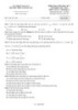 - Câu 7. Con lắc đơn gồm vật nặng khối lượng m được treo vào sợi dây có chiều dài dao động điều hòa ở tại nơi có gia tốc trọng trường g. Chu kì dao động nhỏ T của con lắc phụ thuộc vào A. m và l. B. l và g. C. m và g. D. m, l và g. .x Câu 8. Một sóng cơ truyền với phương trình u 5.cos 20 t cm (trong đó x tính bằng m, t 2 tính bằng giây). Vận tốc truyền sóng trong môi trường là A. 20 cm/s. B. 40 m/s. C. 20 m/s. D. 40 cm/s. Câu 9. Một chất điểm dao động điều hòa với gia tốc cực đại 4 2 cm/s2 và chu kì T=2s. Tại thời điểm ban đầu, chất điểm có vận tốc v 2 3 cm/s và đang tăng. Trong quãng thời gian 41,5s số lần chất điểm có tốc độ bằng một nửa tốc độ cực đại là A. 43 lần. B. 44 lần. C. 82 lần. D. 81 lần. Câu 10. Một vật nhỏ dao động theo phương trình x = 10.cos(t + 0,5) cm. Pha ban đầu của dao động là: A. 0,25π rad. B. π rad. C. 0,5π rad. D. 1,5π rad. Câu 11. Cho hai dao động điều hòa có phương trình lần lượt x1 2.cos t (cm), x2 4.cos t (cm). Ở thời điểm bất kì, ta luôn có x v 1 x v 1 x v 1 x v 1 A. 1 1 . B. 1 1 . C. 1 1 . D. 1 1 . x2 v2 2 x2 v2 2 x2 v2 2 x2 v2 2 Câu 12. Dao động của vật là tổng hợp của hai dao động điều hòa cùng phương và lệch pha nhau 2 và có biên độ tương ứng là 9 cm và 12 cm. Biên độ dao động tổng hợp của vật là A. 3 cm. B. 15 cm. C. 10,5 cm. D. 21 cm. Câu 13. Phát biểu nào sau đây về sự so sánh li độ, vận tốc và gia tốc là đúng? Trong một dao động điều hoà, li độ, vận tốc và gia tốc là ba đại lượng biến đổi điều hoà theo thời gian và có A. cùng tần số góc. B. cùng pha ban đầu. C. cùng pha. D. cùng biên độ. Câu 14. Khi có sóng dừng trên một sợi dây, khoảng cách giữa hai nút liên tiếp bằng A. một phần tư bước sóng. B. một số nguyên lần bước sóng C. một nửa bước sóng. D. một bước sóng. Câu 15. Một con lắc lò xo nằm ngang dao động điều hòa với biên độ A=10cm, tốc độ góc 4. rad / s . Cho khối lượng quả lắc là m=250 gam, cho 2 =10. Lực đàn hồi cực đại tác dụng lên quả lắc có giá trị là A. 0,4N. B. 10N. C. 40N. D. 4N. Câu 16. Thí nghiệm giao thoa sóng ở mặt nước với hai nguồn kết hợp dao động cùng pha. Sóng do hai nguồn phát ra có bước sóng . Cực đại giao thoa là những điểm cách hai nguồn những đoạn d1 và d 2 thỏa mãn A. d1 d2 n 0,25 với n 0, 1, 2,... B. d1 d 2 n với n 0, 1, 2,... C. d1 d2 n 0,5 với n 0, 1, 2,... D. d1 d2 2n 0,75 với n 0, 1, 2,... 2/4 - Mã đề 001