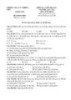 - TRƯỜNG THCS LÝ THƯỜNG KIỂM TRA CUỐI HỌC KỲ I KIỆT NĂM HỌC 2021 2022 NHÓM SINH MÔN: SINH HỌC 9 Thời gian làm bài: 45 phút ĐỀ CHÍNH THỨC (không kể thời gian phát đề) (Đề thi có 4 trang) Em hãy chọn đáp án trước câu trả lời đúng Câu 1( 0,35đ): Kiểu gen nào dưới đây được xem là thuần chủng về cả hai cặp tính trạng? A. AaBb B. Aabb C. aaBb D. AABB Câu 2(0,3đ): Ở lúa, tính trạng hạt dài (A) là trội hoàn toàn so với tính trạng hạt tròn (a). Nếu đời F1 có tỉ lệ kiểu hình 50% hạt dài : 50% hạt tròn thì 2 cơ thể đem lai ở P có kiểu gen như thế nào? A. P: AA x aa B. P: Aa x Aa C. P: AA x aa hoặc P: Aa x aa D. P: Aa x aa Câu 3(0,35đ): Tính trạng tương phản là A. các tính trạng cùng một loại nhưng biểu hiện trái ngược nhau. B. những tính trạng số lượng và chất lượng. C. tính trạng do một cặp alen quy định. D. các tính trạng khác biệt nhau. Câu 4(0,3đ): Ruồi giấm có 2n = 8 NST. Có 2 hợp tử của ruồi giấm đều nguyên phân 3 lần liên tiếp. Số NST có trong các tế bào con được tạo ra là bao nhiêu? A. 128 B. 1024 C. 96 D. 1280 Câu 5(0,35đ): Nhiễm sắc thể được quan sát rõ nhất dưới kính hiển vi ở kỳ giữa vì A. NST dãn xoắn tối đa. B. NST đóng xoắn tối đa. C. ADN nhân đôi xong. D. NST phân li về hai cực của tế bào. Câu 6(0,35đ): Trong giảm phân, sự tự nhân đôi của nhiễm sắc thể xảy ra ở: A. Kì trung gian của lần phân bào I. B. Kì trung gian của lần phân bào II C. Kì giữa của lần phân bào II. D. Kì giữa của lần phân bào I. Câu 7(0,35đ): Bộ NST đặc trưng của những loài sinh sản hữu tính qua các thế hệ nhờ sự kết hợp giữa các quá trình nào? A. Giảm phân và thụ tinh. B. Nguyên phân và thụ tinh C. Nguyên phân, giảm phân và thụ tinh. D. Nguyên phân và giảm phân. Câu 8(0,35đ): Chọn phát biểu ĐÚNG.
