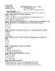 - TRƯỜNG THCS TRẦN QUANG KHẢI ĐỀ THI HỌC KỲ I – NĂM HỌC 2011-2012 ------------------------------- ĐỀ THI CHÍNH THỨC Môn Thi:TIẾNG ANH 6 (MÃ ĐỀ B) Thời gian làm bài:45phút Họ, tên thí sinh:............................................. Số báo danh:.....................Lớp:..... Teacher Marks Remarks A. LANGUAGE FOCUS (4ms) I/ Which underlined part is pronounced differently from the others? (1m) Câu 1: A. zoo B. room C. school D. floor Câu 2: A. breakfast B. teacher C. repeat D. read Câu 3: A. town B. down C. window D. shower Câu 4: A. drugstore B. museum C. bus D. lunch II/ Choose the best answer: (3ms) Câu 5: Are there any stores near Chi.......................house? A. are B. 's C. is D. isn't Câu 6: ..........................people are there in your family? A. How old B. What C. How many D. How Câu 7: What is this?- ............................... . A. No.That's my book. B. Yes.This is her book.. C. This is a book. D. This is Ba. Câu 8: My uncle is a …………………… . He works on a farm. A. teacher B. doctor C. worker D. farmer Câu 9: There..............................flowers in the garden. A. are B. have C. has D. is Câu 10: There is a hospital ……………………..to my house. A. near B. next C. opposite D. in front Câu 11: What are you doing now?- I..................................video games. A. playing B. play C. am playing D. plays Câu 12: Is your garden.................................? - No, it isn't. It's small. A. quiet B. beautiful C. big D. small Câu 13: How is Mr. Ha traveling to Ha Noi?- He is traveling …………………… plane. A. in B. by C. on D. with Câu 14: After school, Nam and Ba do……………………homework. A. their B. his C. our D. her Câu 15: Do Ba and Nam get up late in the morning?- Yes,..................do. A. he B. I C. she D. they Câu 16 : What do we have today? …………………………… . A. Yes, we do. B. No, we don’t. C. History and Art. D. On Monday. Trang 3