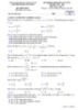 - A. 0. B. 3. C. 2. D. 1. Câu 18: Có bao nhiêu cách xếp 5 nam và 6 nữ thành một hàng dọc sao cho 5 nam luôn đứng đầu ? A. 84600 . B. 480 . C. 840 . D. 86400 . Câu 19: Trong mặt phẳng Oxy , cho đường thẳng d : x 2 y 3 0 . Phép đồng dạng có được bằng cách thực hiện liên tiếp phép vị tự tâm O tỉ số k 2 và phép tịnh tiến theo vectơ v 1; 2 biến đường thẳng d thành đường thẳng d có phương trình A. x 2 y 1 0 . B. x 2 y 1 0 . C. x 2 y 11 0 . D. x 2 y 11 0 Câu 20: Xét sự biến thiên của hàm số y = sin x. Trong các kết luận sau, kết luận nào đúng? π 3π A. Hàm số đã cho đồng biến trên khoảng ; . 2 2 3π 5π B. Hàm số đã cho đồng biến trên khoảng ; . 2 2 C. Hàm số đã cho có tập giá trị là ( −1;1) . π π D. Hàm số đã cho luôn nghịch biến trên khoảng − ; . 4 2 an + 2 Câu 21: Cho dãy số ( un ) với un = , a là tham số. Tìm tất cả các giá trị của a để dãy số ( un ) là n +1 một dãy số giảm A. a < 2 . B. a < 1 . C. a > 1 . D. a > 2 . x 2023 − x Câu 22: Tính giới hạn L = lim . x →1 x −1 A. 2021 . B. 2024 . C. 2022 . D. 2023. Câu 23: Cho một hình vuông, mỗi cạnh của hình vuông đó được chia thành n đoạn bằng nhau bởi n − 1 điểm chia (không tính 2 đầu mút mỗi cạnh). Xét các tứ giác có 4 đỉnh là 4 điểm chia trên 4 cạnh của hình vuông đã cho. Gọi a là số tứ giác tạo thành và b là số các hình bình hành trong a tứ giác đó. Giá trị của n thỏa mãn a = 9b là A. n = 12 . B. n = 4 . C. n = 5 . D. n = 8 . Câu 24: Gọi M , m lần lượt là giá trị lớn nhất và giá trị nhỏ nhất của y = 2 cos 2 x + 2 3 sin x cos x − 1 . Khi đó M + m có giá trị là A. M + m =3. 1. B. M + m = C. M + m =0. D. M + m =4. Câu 25: Tìm hệ số chứa x 5 trong khai triển P( x= ) x(1 − 2 x) n , biết An2 − Cn2+1 = 5. A. 32. B. 80. C. −32. D. -80. Câu 26: Có 18 cuốn sách gồm 7 cuốn sách Toán, 6 cuốn sách Lý và 5 cuốn sách Hóa. Các cuốn sách đôi một khác nhau. Thầy giáo chọn ngẫu nhiên 8 cuốn sách để làm phần thưởng cho một học sinh. Tính xác suất để số cuốn sách còn lại của thầy còn đủ 3 môn. 11 13 1315 1317 A. . B. . C. . D. . 1326 1326 1326 1326 2 cos x + 1 Câu 27: Gọi T là tập giá trị của hàm số y = . Khi đó ta có cos x − 2 A. T = [ −1;3] . B. T = [ −3;1] . 1 1 C. T = − ;3 . D. T = −3; . 3 3 Trang 3/5 - Mã 201
