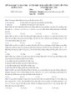 - SỞ GIÁO DỤC VÀ ĐÀO TẠO KÌ THI HỌC SINH GIỎI LỚP 12 THPT CẤP TỈNH QUẢNG NAM NĂM HỌC 2020 – 2021 Môn: VẬT LÝ (Đề có 06 trang) Thời gian: 90 phút (không tính thời gian giao đề) Ngày thi: 12/3/2021 Câu 1. Trong dao động điều hòa của con lắc đơn, lực kéo về là A. lực căng dây. B. hình chiếu của trọng lực theo phương chuyển động. C. trọng lực. D. hợp lực của trọng lực và lực căng dây. Câu 2. Một vật thực hiện đồng thời hai dao động điều hòa cùng phương, cùng tần số có phương trình lần lượt là x1 = 3cos(ωt + φ1) (cm) và x2 = 4cos(ωt + φ2) (cm). Biên độ dao động tổng hợp có thể nhận giá trị là A. 0,5 cm. B. 8 cm. C. 6,5 cm. D. 12 cm. Câu 3. Một con lắc lò xo gồm vật nặng khối lượng 100g gắn vào đầu lò xo có độ cứng 100 N/m, kích thích vật dao động. Trong quá trình dao động, vận tốc của vật có độ lớn cực đại bằng 62,8cm/s. Lấy π2=10. Biên độ dao động của vật là A. cm. B. 2 cm. C. 4 cm. D. 3,6 cm. Câu 4. Một con lắc lò xo gồm lò xo nhẹ có độ cứng 100 N/m và vật nặng có khối lượng m dao động cưỡng bức dưới tác dụng của ngoại lực biến thiên tuần hoàn với tần số f thay đổi được. Lấy π 2 = 10. Biết rằng khi tăng hay giảm f từ giá trị 2,5 Hz thì biên độ dao động cưỡng bức đều giảm. Giá trị của m là A. 400g. B. 100g. C. 250g D. 200g. Câu 5. Một sóng cơ hình sin truyền trong một môi trường đồng nhất. Xét trên cùng một hướng truyền sóng, khoảng cách giữa hai phần tử môi trường A. dao động cùng pha là một phần tư bước sóng. B. gần nhau nhất dao động cùng pha là một bước sóng. C. dao động ngược pha là một phần tư bước sóng. D. gần nhau nhất dao động ngược pha là một bước sóng. Câu 6. Người ta gây một chấn động ở đầu O một dây cao su căng thẳng làm tạo nên một dao động theo phương vuông góc với vị trí bình thường của dây, với chu kì 1,8 s. Sau 4s, chấn động truyền được 20 m dọc theo dây. Bước sóng của sóng tạo thành truyền trên dây là A. 6 m. B. 9 m. C. 4 m. D. 3 m. Câu 7. Trong một thí nghiệm về giao thoa sóng trên mặt nước, hai nguồn kết hợp A, B dao động cùng pha, cùng tần số f = 32 Hz. Tại một điểm M trên mặt nước cách các nguồn A, B những khoảng d 1 = 28 cm, d2 = 23,5 cm, sóng có biên độ cực đại. Giữa M và đường trung trực AB có 1 day c ̃ ực đại khác. Tốc độ truyền sóng trên mặt nước là A. 34 cm/s. B. 24 cm/s. C. 72 cm/s. D. 48 cm/s.