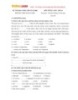 - VnDoc - Tải tài liệu, văn bản pháp luật, biểu mẫu miễn phí a. in order to not wake b. so as not to wake c. to not wake d. to wake 5. ……………you have no keys, you ‘ll have to get back before I go out. a. If b. Although c. Unless d. As 6. I really prefer just about anything …………..watching TV. a. from b. or c. than d. to 7. Gold ……………..near San Francisco in 1848 and the gold rush started the following year. a. has been discovered b. discovered c. was discovered d. is discovered 8. I regret ……………. you that we can’t approve your application. a. inform b. to inform c. informing d. informed 9. If I had gone to the bank this morning, I …………money from you now. a. would not borrow b. would not have borrowed c. will not borrow d. will no have borrowed II. Give the correct from of the words in brackets (2ms) 1. He is engrossed in doing (SCIENCE) …………….. research. 2. They entered the areas without (PERMIT) …………….. 3. He wants (WIDTH) ……………… his knowledge of the subject. 4. The giant panda is a(n) (DANGER) ……………..species. 5. What makes the computer a (MIRACLE). …………device? 6. You may be surprised at the large (VARIED) ……………..of animals in national parks. 7. The architecture in the downtown area is a successful (COMBINE) ………….of old and new. 8. He came first in the poetry (COMPETED) …………….. III. Give the correct tenses of the verbs in brackets (2ms) Mary (1. have) ……………….to go to New York last week, but she almost (2.miss) ……………the plane. She (3. stand) ………………in the queue at the check-in desk when she suddenly (4. realize) ………….. that she (5. leave) …………….her passport at home. Fortunately, she (6.not/ live)………….. very far from the airport so she (7. have)…………..time to go home to get the passport. She (8. get) ……………. back to the airport just in time for her flight.