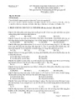 - Câu 10: Cho 1,38 gam X có công thức phân tử C2H 6O5N2 ( là muối của α-amino axit với HNO 3 ) phản ứng với 150 ml dung dịch NaOH 0,2 M . Sau phản ứng cô cạn thu được m gam rắn Y. Giá trị của m là: A. 2,14 B. 2,22 C. 1,13 D. 1,01 Câu 11: Cho các chất lỏng sau:axit axetic,glixerol,triolein.Để phân biệt các chất lỏng trên,có thể chỉ cần dùng: A. nước và quỳ tím B. nước và dd NaOH C. dd NaOH D. nước Br2 Câu 12: Chia dung dịch X gồm CuSO4 và Al(NO3)3 thành 2 phần bằng nhau. Phần 1 cho tác dụng với dung dịch BaCl2 dư thu được 6,99 gam kết tủa. Phần 2 cho tác dụng với dung dịch NaOH dư, rồi lấy kết tủa nung đến khối lượng không đổi thu được m gam chất rắn. Giá trị của m là A. 12,6. B. 4,4. C. 3,2. D. 2,4. Câu 13: Hợp chất hữu cơ X chứa các nguyên tố(C,H,Cl) có %Cl=84,53% về khối lượng.X tác dụng vừa đủ với dd NaOH thu được chất hữu cơ Y.Khối lượng phân tử Y có giá trị A. 60 B. 98 C. 44 D. 82 Câu 14: Để thu được CO2 tinh khiết từ hỗn hợp CO2 bị lẫn khí HCl và hơi nước ta cho hỗn hợp qua lần lượt các bình chứa lượng dư A. dd NaHSO4, dd H2SO 4 đặc. B. dd H2SO 4 đặc, dd Na2CO3. C. dd Na2CO3, dd H2SO 4 đặc. D. dd H2SO4 đặc, NaHCO3. Câu 15: Cho sơ đồ sau: C3H6 Br ( X NaOH Y CuO HCO-CH 2-CHO 1:1) 2 CTCT của X là: A. CH 2Br-CH=CH2 B. CH3CH2CH2OH C. BrCH2CH2CH2Br D. CH3CH(Br)CH2Br Câu 16: Chọn phát biểu đúng về O2 và O3? A. O2 và O3 có số proton và nơtron trong phân tử như nhau. B. O2 và O3 là các dạng thù hình của nguyên tố oxi. C. O2 và O3 có tính oxi hoá manh như nhau. D. Cả O2 và O 3 đều phản ứng được với các chất Ag, KI, PbS ở nhiệt độ thường. Câu 17: Cho luồng khí CO đi qua ống sứ đựng m(g) Fe2O 3 ở nhiệt độ cao một thời gian người ta thu được 6,72(g) hỗn hợp 4 chất rắn khác nhau.Đem hòa tan hỗn hợp này vào dung dịch HNO3 dư tạo thành 0,672(l) NO duy nhất(đktc).Giá trị của m là: A. 6,80(g) B. 6,72(g) C. 8,80(g) D. 7,44(g) Câu 18: Cho V lít Cl2 (đktc) tác dụng với dd NaOH loãng, nguội dư thu được m1 gam tổng khối lượng 2 muối. Cho 2V lít khí Cl2 (đktc) tác dụng với dd NaOH đặc, nóng dư thu được m 2 gam tổng khối lượng 2 muối. Tỉ lệ m1: m2 bằng: A. 1 : 1. B. 1 : 1,5. C. 2 : 1. D. 1 : 2. Câu 19: Cho biết số hiệu nguyên tử của các nguyên tố: ZH = 1, ZB = 5, ZC = 6, ZN = 7, ZO = 8, ZAl =13, ZP = 15, ZS = 16. Nhóm nào sau đây chứa toàn các chất không tuân theo qui tắc bát tử? A. BH 3, NO 2, PCl5. B. CO2 , C2H6, HNO3. C. CH 4, CO2, Al2S3. D. CH4, H 2O2, CS2. Trang 2/7 - Mã đề thi 017
