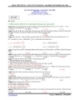 - ĐẶNG VIỆT H ÙNG – TOÁN TIN Ứ NG DỤNG – ĐẠI HỌC BÁCH KHOA H À NỘI Câu 12: Sự xuất hiện cầu vồng sau cơn mưa do hiện tượng nào tạo nên? A. Hiện tượng tán sắc ánh sáng. B. Hiện tượng khú c xạ ánh sáng. C. Hiện tượng phản xạ ánh sáng. D. Hiện tượng giao thoa ánh sáng. Câu 13: Một nguồn sóng tại O có phương trình u0 = asin(10 t) truyền theo phương Ox đến điểm M cách O một đoạn x có phương trình u = asin(10 π t - 4x), x(m). Vận tốc truyền sóng là A: 9,14m/s B: 8,85m/s C. 7,85m/s D. 7,14m/s Câu 14: Đặt hiệu điện thế u = 200 2sin100 t (V) vào hai đầu tụ điện C, thì cường độ dòng điện qua mạch có biểu thức i = 2sin(100 t + ) (A). Tìm . A. = 0. B. = . C. = /2 D. = - /2 Câu 15: Hiện tượng giao thoa ánh sáng là sự kết hợp của hai sóng ánh sáng thỏa mãn điều kiện: A. Cùng t ần số và cùng biên độ. B. Cùng pha và cù ng biên độ. C. Cùng tần số và cùng điều ki ện chiếu sáng. D. Cùng t ần số và độ lệch pha không đ ổi. Câu 16: Tính chất nào sau đây không phải củ a tia X: A. Tính đâm xuyên mạnh. B. Xuyên qua các tấm chì dày cỡ cm. D. Gây ra hiện tượng quang điện. C. Iôn hóa không khí. Câu 17: Tìm phát biểu sai về đặc đi ểm quang phổ vạch củ a các nguyên tố hóa học khác nhau. A. Khác nhau về số lượng vạch. B. Khá c nhau về màu sắc các vạch. C. Khá c nhau về độ sáng tỉ đối giữa các vạch. D. Khác nhau về bề rộng các vạch quang phổ. Câu 18: Một vật phát ra tia hồng ngoại vào môi trường xung quanh phải có nhiệt độ B. trên 00C. C. trên 1000C. D. trên 00K. A. cao hơn nhiệt độ môi trường. Câu 19: Chiếu vào catot của một tế bào quang điện các bức xạ có bước sóng = 400nm và ' = 0,25m thì thấy vận tốc ban đầu cực đ ại của electron quang điện gấp đôi nhau. Xác định công thoát eletron của kim loại làm catot. Cho h = 6,625.10-34Js và c = 3.108m/s. A. A = 3, 9750.10-19J. B. A = 1,9875.10-19J. C. A = 5,9625.10-19J. D. A = 2,385.10-18J. Câu 20: Chiếu bức xạ có bước sóng = 0,552m với công suất P = 1,2W vào catot của một tế bào quang điện, dòng quang điện bão hòa có cường độ Ibh = 2mA. Tính hiệu suất lượng tử của hiện tượng quang điện. Cho h = 6,625.10-34Js ; c = 3.108m/s, e = 1,6.10-19C. A. 0,65% B. 0,37% C. 0,55% D. 0,425% Câu 21: Sau 1năm, khối lượng chất phóng xạ giảm đi 3 lần. Hỏi sau 2 năm, khối lượng chất phóng xạ trên giảm đi bao nhiêu lần so với ban đầu. A. 9 lần. B. 6 lần. C. 12 lần. D. 4,5 lần 7 Câu 22: Cho phản ứng hạt nhân: p 3 Li 2 17,3MeV . Khi tạo thành được 1g Hêli thì năng lượng tỏa ra từ phản ứng trên là bao nhiêu? Cho NA = 6,023.1023 mol-1. A. 13,02.1023MeV. B. 26,04.1023MeV. C. 8,68.1023MeV. D. 34,72.1023MeV. Câu 23: Một vật dao động điều hòa với chu kì T = 3,14s. Xác định pha dao động của vật khi nó qua vị trí x = 2cm với vận tốc v = 0,04m/s. A. rad B. rad C. rad D. 0 3 4 6 Câu 24: Một vật có khối lượng m dao động điều hòa với biên độ A. Khi chu kì tăng 3 lần thì năng lượng của vật thay đổi như thế nào? A. Tăng 3 lần. B. Giảm 9 lần C. Tăng 9 lần. D. Giảm 3 lần. Câu 25: Cho hạt proton b ắn phá hạt nhân Li, sau phản ứng ta thu được hai hạt . Cho biết mp = 1,0073u; m = 4,0015u. và mLi = 7,0144u. Phản ứng này tỏa hay thu năng lượng bao nhiêu? A. Phản ứng tỏa năng lượng 17,41MeV. B. Phản ứng thu năng lượng 17,41MeV. C. Phản ứng tỏa năng lượng 15MeV. D. Phản ứng thu năng lượng 15MeV. Câu 26: Hiện tượng quang điện trong là hiện tượng A. bứt electron ra khỏi bề mặt kim loại khi bị chi ếu sáng. B. giải phóng electron khỏi kim loại bằng cách đốt nóng. C. giải phóng electron khỏi mối liên kết trong bán dẫn khi bị chiếu sáng. D. giải phóng electron khỏi bán dẫn bằng cách bắn phá ion. Câu 27: hai dao động điều hoà cùng phương cùng tần số có biên độ : A1=8cm ; A2=6cm. Biên độ dao động tổng hợp có thể nhận giá trị nào sau đây A. 48cm B. 1cm C. 15cm D. 8cm www.moon.vn Mobile : 0985074831 - 0974528705