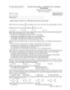 - B. tổ hợp thông tin di truyền giữa các loài đ ứng rất xa nhau trong bậc thang phân loại. C. khắc phục hiện tượng bất thụ trong lai xa. D. tạo hiện tượng ưu thế lai tốt nhất. Câu 21: Nhân tố tiến hóa có hướng là: A. các yếu tố ngẫu nhiên và di nhập gen. B. giao phối không ngẫu nhiên và CLTN C. đột biến và giao phối không ngẫu nhiên. D. quá trình chọn lọc tự nhiên. AB De Câu 22: Xét 4 tế bào sinh dục trong một cá thể ruồi giấm cái có kiểu gen . 4 tế bào trên giảm ab dE phân tạo ra số loại trứng tối thiểu có thể có là A. 8 . B. 4. C. 2 . D. 1 . Câu 23: Thành phần chủ yếu của nhiễm sắc thể ở sinh vật nhân thực gồm A. ADN mạch kép, thẳng và prôtêin loại histôn. B. ARN mạch kép, thẳng và prôtêin không phải histôn. C. ADN mạch kép, vòng và prôtêin loại histôn. D. ARN mạch kép, thẳng và prôtêin loại histôn. Câu 24: Ở người, gen A quy định da bình thường là trội hoàn toàn so với alen a gây b ệnh bạch tạng, gen này nằm trên nhiễm sắc thể thường. Gen B quy định mắt nhìn màu bình thường là trội hoàn toàn so với alen b gây bệnh mù màu đỏ - xanh lục, gen này nằm trên nhiễm sắc thể giới tính X, không có alen tương ứng trên Y. Biết rằng không có đột biến xảy ra, cặp bố mẹ nào sau đây có thể sinh ra người con trai mắc đồng thời cả hai bệnh trên? A. aaX BXB × AaXbY. B. AaXBXb × aaXBY. D. AaXbXb × AAXBY. C. aaXBXb × AAXbY. Câu 25: Cặp cơ quan nào sau đây là b ằng chứng, chứng tỏ sinh vật tiến hoá theo hướng đồng quy tính trạng? A. Chân trước của mèo và cánh dơi. B. Tuyến nọc độc ở rắn và tuyến nước bọt ở người. C. Cánh chim và cánh bướm. D. Ruột thừa của người và ruột tịt ở động vật. Câu 26: Ở một lo ài thực vật (2n = 22), cho lai hai cây lưỡng bội với nhau đ ược các hợp tử F1. Một trong số các hợp tử này nguyên phân liên tiếp 4 đợt ở kì giữa của lần nguyên phân thứ 4, người ta đếm được trong các tế b ào con có 336 cromatít. Hợp tử này là dạng đột biến nào ? A. Thể không nhiễm. B. Thể tam nhiễm. C. Thể bốn nhiễm. D. Thể một nhiễm Câu 27: Cơ thể bình thường có gen tiền ung thư như ng gen này không phiên mã nên cơ thể không bị bệnh ung thư. Khi gen tiền ung thư b ị đột biến thành gen ung thư thì cơ thể sẽ bị bệnh. Gen tiền ung thư b ị đột biến ở vùng nào sau đây của gen? B. Vùng b ất kì ở trên gen. A. Vùng mã hoá. C. Vùng điều hoà. D. Vùng kết thúc. Câu 28: Con lai trong phép lai nào sau đây là thể đa bội cùng ngu ồn ? A. AAbb x aaBB AAaaBBbb. B. AABB x aabb AAaBb. C. AABB x DDEE ABDE. D. AABB x DDEE AABBDDEE. Câu 29: Giả sử trong một gen có một bazơ xitozin trở thành d ạng hiếm (X*) thì sau 3 lần nhân đôi liên tiếp thì sẽ có bao nhiêu gen đ ột biến dạng thay thế G-X bằng AT ? A. 7 . B. 4. C. 3 . D. 8 . Câu 30: Trong tế bào của cơ thể người bình thường có các gen ức chế khối u làm cho các khối u không thể hình thành đ ược . Tuy nhiên, nếu bị đột biến làm cho gen này mất khả năng kiểm soát khối u thì các tế bào ung thư xuất hiện tạo nên các khối u. Loại đột biến này thường là: A. đột biến lệch bội. B. đột biến mất đoạn NST. C. đột biến gen trội D. đột biến gen lặn. Câu 31: Cho các bệnh, tật và hội chứng di truyền sau đây ở người: (1) Bệnh phêninkêto niệu. (2) Bệnh ung thư máu. (3) Tật có túm lông ở vành tai. (4) Hội chứng Đao. (5) Hội chứng claiphentơ. (6) Bệnh máu khó đông. Trang 3/6 - Mã đề thi 132