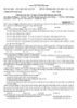 - www.VIETMATHS.com N nằm trên mặt nước và nằm trên đường thẳng vuông góc với AB t ại A, cách A m ột kho ảng nh ỏ nh ất b ằng bao nhiêu để M dao động với biên độ cực tiểu A.9,22cm B.14cm C.8,75cm D.8,57cm Câu 20. Đối với cùng một hệ dao động thì ngoại lực trong dao đ ộng duy trì và trong dao đ ộng c ưỡng b ức cộng hưởng khác nhau là do A.tần số biến thiên của ngoại lực khác nhau. B.pha ban đầu của ngoại lực khác nhau. C.biên độ của ngoại lực khác nhau. D.ngoại lực độc lập và không độc lập với hệ dao động. 7 Câu 21. Dùng hạt nhân p bắn vào hạt 3 Li đứng yên. Phản ứng sinh ra 2 hạt X gi ống nhau có cùng t ốc đ ộ. Biết tốc độ hạt p bằng 4 lần tốc độ hạt X. Coi khối lượng các hạt nhân bằng số khối tính theo đơn vị u. Góc tạo bởi phương chuyển động của 2 hạt X là: A.1600 B.1500 C.1200 D.900 Trang 2/6 – Mã đề 147 Câu 22. Một con lắc đơn có chiều dài 100cm, đang dao động đi ều hòa với biên đ ộ góc α0 tại nơi có gia tốc trọng trường là g = 9,8m/s2. Biết tốc độ cực đại của vật trong quá trình dao động là 0,49m/s. T ỉ số gi ữa l ực căng của sợi dây khi vật ở vị trí cân bằng và vị trí có li độ cực đại là: A.1,12 B.1,04 C.1,60 D.1,2 Câu 23. Một động cơ không đồng bộ ba pha, các cuộn dâ y của nó được mắc tam giác. Nối động cơ đó vào mạng điện xoay chiều ba pha có điện áp pha là 220V. Động cơ đạt công suất 10,392kW và có h ệ s ố công suất 10 cosφ = . Cường độ dòng điện chạy qua động cơ là : 11 A.10A. B.30A C.15A D.5A Câu 24. Điều nào sau đây không đúng về phản ứng phân hạch : A.Không cần điều kiện nhiệt độ rất cao để xảy ra phản ứng phân hạch. B.Phản ứng phân hạch là phản ứng tỏa nhiệt. C.Phóng xạ là trường hợp đặc biệt của phân hạch. D.Phản ứng phân hạch sinh ra các hạt nhân cỡ trung bình. Câu 25. Đoạn mạch AB gồm hai đoạn mạch AM và MB, đoạn mạch AM gồm đi ện tr ở R 1 = 90Ω mắc nối 0,9 tiếp với cuộn cảm thuần L = H, đoạn mạch MB là một hộp kín X chứa hai trong ba ph ần t ử đi ện tr ở R 2, π cuộn cảm thuần L2 hoặc tụ điện C mắc nối tiếp. Đặt vào hai đầu đoạn mạch AB một điện áp xoay chiều có π giá trị hiệu dụng không đổi thì u AM = 180 cos(100πt + )( V ); uMB = 60 2 cos100π t (V ) (V). Công suất 2 2 tiêu thụ của mạch là A.120W B.180W C.90W D.240W Câu 26. Đoạn mạch AB gồm điện trở thuần R, cuộn cảm thuần L thay đổi và tụ điện C m ắc n ối ti ếp. Đ ặt vào hai đầu đoạn mạch một điện áp xoay chiều có giá trị hiệu dụng và tần số không thay đổi. Khi thay đ ổi L 1 2 thì có hai giá trị của L là L1 = H và L2 = H điện áp hiệu dụng giữa hai đầu cuộn cảm có cùng giá trị. Để π π điện áp hiệu dụng giữa hai đầu cuộn cảm có giá trị cực đại thì L có giá trị 3 2 3 4 A. H B. H C. H D. H π 2π 4π 3π Câu 27. Khi tăng điện dung của tụ điện lên 2 lần và tăng độ tự cảm c ủa cu ộn c ảm lên 8 l ần thì t ần s ố dao động của mạch A.giảm 4 lần B.giảm 16 lần C.tăng 16 lần D.tăng 4 lần Câu 28. Một mẫu đá có chứa U235 và U238 có chu kì bán rã l ần l ượt là 7,1.10 8 năm và 4,5.109 năm, giả sử khi hình thành trong mẫu đá đó có chứa hai lo ại chất này v ới t ỉ l ệ 3 : 2. Th ời gian đ ể t ỉ s ố kh ối l ượng c ủa U235 và U238 là 2 : 7 bằng A.1,4 tỉ năm B.1,3 tỉ năm C.1,5 tỉ năm D.2,02 tỉ năm