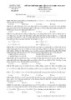 - TRƯỜNG THPT ĐỀ THI THỬ ĐẠI HỌC LẦN II NĂM HỌC 20122013 CHUYÊN HÀ TĨNH MÔN VẬT LÍ 12 TỔ VẬT LÍ Thời gian làm bài: 90 phút Mã đề 207 50 câu trắc nghiệm Họ, tên thí sinh:............................................................................... Số báo danh:........................... Câu 1: Một vật dao động điều hòa với phương trình x = 5 cos( 6 t + /9) cm. Tính vận tốc trung bình của vật trong một chu kì dao động. A. 5 cm/s. B. 60 cm/s. C. 20 cm/s. D. 0 cm/s. Câu 2: Dao động tổng hợp của hai dao động điều hòa cùng phương, cùng tần số có biên độ bằng trung bình cộng của hai biên độ thành phần và lệch pha so với dao động thành phần thứ nhất là 90o. Độ lệch pha của hai dao động thành phần đó là: A. 105o. B. 120o. C. 143,1o. D. 126,9o. Câu 3: Trong một mạch dao động lí tưởng đang có dao động điện từ tự do. Gọi L là độ tự cảm và C là điện dung của mạch. Tại thời điểm t, hiệu điện thế giữa hai bản tụ điện là u và cường độ dòng điện trong mạch là i. Gọi U0 là hiệu điện thế cực đại giữa hai bản tụ điện và I0 là cường độ dòng điện cực đại trong mạch. Hệ thức liên hệ giữa u và i là C L A. i 2 = (U 02 − u 2 ) . B. i 2 = (U 02 − u 2 ) . L C C. i = LC (U 0 − u ) . 2 2 2 D. i = LC (U 02 − u 2 ) . 2 Câu 4: Một con lắc đơn gồm một quả cầu nhỏ mang điện tích q không đổi, treo ở đầu một sợi dây mảnh không giản dài 25 cm. Con lắc treo trong chân không, điểm treo cố định. Xung quanh nó có điện trường, đường sức điện trường song song nằm ngang theo một phương không đổi, cường độ điện trường biến thiên điều hòa tần số 10 Hz. Tăng biên độ dao động điều hòa của con lắc bằng cách A. giảm chiều dài của dây treo. B. giảm điện tích quả cầu. C. tăng khối lượng của quả cầu. D. giảm khối lượng của quả cầu. Câu 5: Một sợi dây đàn hồi dài 60cm có hai đầu cố định được kích thích cho dao động bằng nam châm điện được nuôi bằng mạng điện xoay chiều có tần số xoay chiều là 50Hz. Trên dây có sóng dừng với năm bó sóng. Tốc độ truyền sóng trên dây là A. 15m/s. B. 12m/s. C. 6m/s. D. 24m/s. Câu 6: Một nguồn sóng cơ truyền dọc theo đường thẳng, nguồn dao động với phương trình λ uo = a cos(ωt ) cm. Một điểm M trên phương truyền sóng cách nguồn một khoảng x = , tại thời 3 T điểm t = có li độ uM = 2cm. Coi biên độ sóng không đổi trong quá trình truyền đi, biên độ sóng là 2 A. 2cm. B. 2 2 cm. C. 2 3 cm. D. 4cm. Câu 7: Một vật rắn có momen quán tính đối với một trục quay ∆ cố định xuyên qua vật là 5.103 kgm2. Lấy π2 =10. Vật quay quanh trục ∆, tốc độ quay tăng từ 0 đến 600 vòng/phút, độ biến thiên động năng quay của vật là A. 2,5 J. B. 0,5 J. C. 20 J. D. 10 J. Câu 8: Trên mặt nước có một nguồn phát sóng cơ. Xét hai điểm A và B cùng nằm trên một phương truyền sóng. Sóng truyền từ B tới A với tốc độ 8m/s, phương trình dao động của A và B lần lượt là 3π π u A = 6 cos(20π t − ) cm và u B = 6 cos(20π t − ) cm. Khoảng cách gần nhất giữa A và B là 2 2 A. 20cm. B. 40cm. C. 80cm. D. 10cm. Trang 1/6 Mã đề thi 207 ThH I,II ThC III,IV ThT V