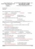 - A. 3 kiểu gen, 6 kiểu giao phối B. 3 kiểu gen, 3 kiểu giao phối C. 6 kiểu gen, 4 kiểu giao phối D. 5 kiểu gen, 6 kiểu giao phối Câu 34. Một cơ thể đực có kiểu gen AaBbDdEe, các gen phân li độc lập và quá trình giảm phân bình thường, không xảy ra đột biến. Số loại giao tử ít nhất và nhiều nhất có thể được tạo ra từ 2 tế bào của cơ thể này lần lượt là: A . 2 và 4 B. 1 và 16 C. 2 và 8 D. 2 và 16 Câu 35. Một quần thể thực vật ngẫu phối ở trạng thái cân bằng di truyền, tính trạng màu hoa do một gen có 4 alen nằm trên nhiễm sắc thể thường quy định. Alen A1 quy định hoa đỏ trội hoàn toàn so với các alen A2, alen A3 và alen A4; alen A2 quy định hoa tím trội hoàn toàn so với các alen A3 và alen A4; alen A3 quy định hoa vàng trội hoàn toàn so với alen A4 quy định hoa trắng. Theo lý thuyết, trong các nhận định sau có bao nhiêu nhận định đúng? 1. Thực hiện phép lai giữa 2 cá thể (P), nếu F1 thu được tối đa 3 loại kiểu gen, thì có 3 loại kiểu hình. 2. Cho 1 cây hoa đỏ lai với 1 cây hoa tím, nếu đời con F1 có tỉ lệ kiểu hình 1 : 2 : 1 thì tối đa có 4 phép lai phù hợp. 3. Cho cây hoa đỏ lai với cây hoa tím, đời F1 sẽ thu được tỉ lệ 2 cây hoa đỏ: 1 cây hoa tím: 1 cây hoa trắng. 4 .Cho các cây hoa tím lai với nhau, trong số cây hoa tím thu được ở đời F1, số cây thuần chủng chiếm tỉ lệ 9/16. A. 3. B. 2. C. 1. D. 4. Câu 36. Ở người, kiểu tóc do một gen gồm 2 alen (A, a) nằm trên NST thường quy định. Người chồng tóc xoăn có bố, mẹ đều tóc xoăn và em gái tóc thẳng. Người vợ tóc xoăn có bố tóc xoăn, mẹ và em trai tóc thẳng. Tính theo lí thuyết thì xác suất cặp vợ chồng này sinh được con gái đầu lòng tóc thẳng là A. 3/4. B. 3/8. C. 5/12. D. 1/12. Câu 37. Một loài động vật giao phối ngẫu nhiên có bộ nhiễm sắc thể lưỡng bội 2n = 8. Xét 4 cặp gen A, a; B, b; D,d; E,e. Các gen phân li độc lập, mỗi gen quy định một tính trạng và các alen trội là trội hoàn toàn. Giả sử do đột biến,trong loài đã xuất hiện các dạng thể ba tưong ứng với các cặp nhiễm sắc thể và các thể ba này đều có sức sống và khả năng sinh sản. Cho biết không xảy ra các dạng đột biến khác, ở loài này. Theo lý thuyết phát biểu sau đây đúng? A. Các thể ba có tối đa 108 kiểu gen. B. Các cây bình thường có tối đa 64 kiểu gen. C. Có tối đa 172 loại kiểu gen. D. Các cây con sinh ra có tối đa 16loại kiểu hình. Câu 38. Ở một loài thực vật, alen A quy định thân cao trội hoàn toàn so với alen a quy định thân thấp; alen B quy định quả tròn trội hoàn toàn so với alen b quy định quả dài. Cho cây thân cao, quả tròn giao phấn với cây thân cao, quả dài (P), thu được F1 gồm 4 loại kiểu hình trong đó số cây thân cao, quả tròn chiếm tỉ lệ 40%. Biết rằng không xảy ra đột biến, theo lí thuyết, có bao nhiêu phát biểu sau đây là đúng? 1. Ở F1 số cây thân cao, quả dài chiếm tỉ lệ 4%. 2. Khoảng cách giữa 2 gen A và B là 40 cM. 3. Ở F1, trong tổng số cây thân cao, quả dài cây có kiểu gen đồng hợp chiếm tỉ lệ 50%. 4. Ở đời F1, có 3 kiểu gen quy định kiểu hình thân cao, quả tròn. A. 1 B. 2 C. 3 D. 4 MÃ ĐỀ 001 Trang 5