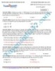- Câu 6 (ID: 96242): Sự phân hạch và phản ứng nhiệt hạch giống nhua ở những điểm nào sau đây? A. Tổng khối lượng của các hạt sau phản ứng lớn hơn tổng khối lượng của các hạt trước phản ứng B. Đều là các phản ứng hạt nhân tỏa năng lượng và năng lượng đó đã kiểm soát được. C. Để các phản ứng đó xảy ra thì đều phải cần nhiệt độ rất cao D. Tổng độ hụt khối của các hạt sau phản ứng lớn hơn tổng độ hụt khối của các hạt trước phản ứng. Câu 7 (ID: 96243):Một sóng cơ học lan truyền trên sợi dây dài. Chọn Ox trùng sợi dây, O trùng vị trí nguồn. Phương trình dao động của sóng tại điểm M có tọa độ x(m) là: u (cm,s) = 2cos(4πx + 100πt + π/3) (cm). Tại t = 0 sóng bắt đầu truyền đi. Tính tốc độ truyền sóng và xác định chiều truyền sóng. A. v = 25 m/s, sóng truyền theo chiều âm của Ox. B. v = 25 m/s , sóng truyền đi theo chiều dương của Ox. C. v = 50 cm/s, sóng truyền theo chiều dương của Ox. D. v = 25 cm/s, sóng truyền theo chiều âm của Ox. Câu 8 (ID: 96244): Một con lắc đơn có khối lượng 200g được kéo lệch khỏi vị trí cân bằng một góc 600 rồi buông nhẹ. Cho g = 10 m/s2. Lực căng cực đại và cực tiểu cuẩ sợi dây là: A. 3N; 1N B. 3,5N ; 0,5N C. 4N ; 1N D. 5N ; 1,5N Câu 9 (ID: 96246): Khi đặt một điện áp xoay chiều có giá trị hiệu dụng không đổi vào cuộn sơ cấp của một máy biến áp lí tưởng thì điện áp cuộn thứ cấp là 20V. Khi tăng số vòng dây cuộn thứ cấp thêm 100 vòng thì điện áp thứ cấp tăng thêm 25%. Khi giảm số vòng dây cuộn thứ cấp 40 vòng thì điện áp trên hai đầu dây cuộn thứ cấp là: A.16 V B. 18 V C. 17,5 V D. 15 V Câu 10 (ID: 96247): Phát biểu nào sau đây là sai? A.Sóng điện từ mang năng lượng. B. Sóng điện từ có thể bị phản xạ, khúc xạ, giao thoa. C. Sóng điện từ luôn là sóng ngang. D. Sóng điện từ truyền đi có vận tốc gần bằng vận tốc ánh sáng. Câu 11 (ID: 96248): Từ nước người ta chiếu xiên tới mặt phân cách giữa nước và không khí nằm ngang một chùm tia sáng đơn sắc màu lục thì tia khúc xạ lục đi là là mặt phân cách. Nếu bỏ tia màu lục đi, chiếu vào mặt phân cách nói trên một chùm hẹp song song gồm các ánh sáng đơn sắc: màu da cam, vàng, lam, chàm, tím dưới cùng góc tới như tia lục. Khi đó đường đi của chùm tia sáng khi tới mặt phân cách được mô tả như thế nào? A. Các tia chàm, tím quay trở lại nước trùng nhau đối xứng với tia qua pháp tuyến. B. Các tia da cam, vàng, lục, lam ló ra khỏi mặt nước tia màu tím sát mặt nước hơn. C. Các tia chàm, tím ló ra khỏi mặt nước tia màu tím sát mặt nước hơn. D. Các tia da cam, vàng ló ra khỏi mặt nước tia màu cam sát mặt nước hơn. >> Truy cập http://tuyensinh247.com/ để học Toán-Lý-Hóa- Sinh- Văn- Anh tốt nhất. 2