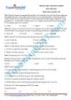 - Câu 42: Oxi hóa 0,08 mol một ancol đơn chức thu được hỗn hợp X gồm axit cacboxylic, andehit, ancol dư, nước. Ngưng tụ toàn bộ hỗn hợp X rồi chia làm hai phần bằng nhau: Phần 1 cho tác dụng với Na dư thu được 0,504 lít khí H2 (đktc). Phần 2 cho tham gia phản ứng tráng bạc hoàn toàn thu được 9,72 gam Ag. Phần trăm khối lượng ancol bị oxi hóa là A. 50,00 % B. 31,25% C. 62,50% D. 40,00% Câu 43: Hòa tan a gam tinh thể CuSO4.5H2O vào nước thu được dung dịch X. Điện phân dung dịch X với điện cực trơ và cường độ dòng điện là 1,93 (A). Nếu thời gian điện phân là t (s) thu được kim loại ở catod và 156,8 (ml) khí ở anod. Nếu thời gian điện phân là 2t (s) thì thu được 537,6 (ml) khí ở cả hai điện cực. Biết các khí đo ở đktc. Thời gian t và giá trị a lần lượt là A. 1400 s và 4,5 gam B. 1400 s và 7 gam C. 1400 s và 7 gam D. 700 s và 3,5 gam Câu 44: Chất nào sau đây không phản ứng trong dung dịch kiềm khi đun nóng ? A. axit fomic B. metyl axetat C. gly-ala D. saccarozơ Câu 45: Cho các phát biểu sau: (1) Xà phòng hóa hoàn toàn chất béo thu được muối của axit béo và ancol. (2) Phản ứng este hoá giữa axit cacboxylic với ancol (xt H2SO4 đặc) là phản ứng thuận nghịch. (3) Ở nhiệt độ thường, chất béo tồn tại ở trạng thái lỏng (như tristearin...), hoặc rắn (như triolein...). (4) Đốt cháy hoàn toàn este no mạch hở luôn thu được CO2 và H2O có số mol bằng nhau. (5) Các axit béo đều là các axit cacboxylic đơn chức, có mạch dài và không phân nhánh. Số phát biểu đúng là: A. 5 B. 4 C. 3 D. 2 Câu 46: Trong danh mục tiêu chuẩn vệ sinh đối với lương thực, thực phẩm. Bộ y tế qui định có 5 chất ngọt nhân tạo được dùng trong chế biến lương thực, thực phẩm, nhưng có qui định liều lượng sử dụng an toàn. Thí dụ chất Acesulfam K, liều lượng có thể chấp nhận được là 0 -15 mg/kg trọng lượng cơ thể mỗi ngày. Như vậy, một người nặng 60 kg, trong một ngày có thể dùng lượng chất này tối đa là A. 12 mg B. 10 mg C. 1500 mg D. 900 mg Câu 47: Hỗn hợp X gồm Al và Fe2O3. Lấy 85,6 gam X đem nung nóng để thực hiện phản ứng nhiệt nhôm (Giả sử chỉ xảy ra phản ứng khử oxit kim loại thành kim loại), sau phản ứng thu được chất rắn Y. Chia Y làm 2 phần bằng nhau: - Phần 1: Hòa tan trong dung dịch NaOH dư thấy thoát ra 3,36 lít khí (đktc) và còn lại m gam chất không tan. - Phần 2: Hòa tan hết trong dung dịch HCl thấy thoát ra 10,08 lít khí (đktc). Giá trị m là A. 16,8 B. 24,8 C. 32,1 D. Đáp án khác >> Truy cập http://tuyensinh247.com/ để học Toán – Lý – Hóa – Sinh – Văn – Anh tốt nhất! 8/22