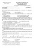 - Câu 23: Một sóng cơ hình sin, biên độ A lan truyền qua hai điểm M và N trên cùng một phương truyền sóng. Quan sát dao động của hai phần tử này thì thấy rằng khi phần tử M có li độ uM thì phần tử N đi qua vị trí có li độ u N với uM = −u N . Vị trí cân bằng của M và N có thể cách nhau một khoảng là A. một bước sóng. B. một nửa bước sóng. C. một phần tư bước sóng. D. ba phần tư bước sóng. Câu 24: Một đoạn mạch điện xoay chiều gồm điện trở thuần R mắc nối tiếp với hộp X . Khi đặt vào hai đầu đoạn mạch trên một điện áp xoay chiều có giá trị hiệu dụng U = 300 V thì điện áp hiệu dụng trên điện trở, trên hộp X lần lượt là U R = 100 V và U X = 250 V. Hệ số công suất của mạch X là A. 0,15. B. 0,25. C. 0,35. D. 0,45. Câu 25: Nối hai cực của máy phát điện xoay chiều vào một tụ điện có điện dung không đổi. Khi roto quay với tốc độ n thì cường độ dòng điện trong mạch là I , khi roto quay với tốc độ 4n thì cường độ dòng điện trong mạch là A. 2I . B. 4I . C. 8I . D. 16I . Câu 26: Khảo sát thực nghiệm một máy biến áp có cuộn sơ cấp A và cuộn thứ cấp B . Cuộn A được nối với mạng điện xoay chiều có điện áp hiệu dụng không đổi. Cuộn B m gồm các vòng dây quấn cùng chiều, một số điểm trên B được nối ra các n K chốt m , n , p , q (như hình vẽ). Số chỉ của vôn kế V có giá trị nhỏ nhất p khi khóa K ở chốt nào sau đây? : q A. Chốt p . V B. Chốt n . C. Chốt q . A B D. Chốt m . Câu 27: Theo thuyết lượng tử ánh sáng hai photon có năng lượng lần lượt là ε1 và ε 2 ( ε1 > ε 2 ) thì kết luận nào sau đây là đúng về hai photon này? A. photon thứ nhất có tần số nhỏ hơn photon thứ hai. B. photon thứ nhất có bước sóng nhỏ hơn photon thứ hai. C. photon thứ nhất chuyển động nhanh hơn photon thứ hai. D. photon thứ nhất chuyển động chậm hơn photon thứ hai. Câu 28: Xét nguyên tử Hidro theo mẫu nguyên tử Bo. Gọi F là độ lớn của lực tương tác điện giữa electron và hạt nhân khi electron chuyển động trên quỹ đạo dừng K . Khi độ lớn của lực tương tác tính F điện giữa electron và hạt nhân là thì electron đang chuyển động trên quỹ đạo dừng nào? 16 A. quỹ đạo dừng L . B. quỹ đạo dừng M . C. quỹ đạo dừng N . D. quỹ đạo dừng O. Câu 29: Xét nguyên tử hiđrô theo mẫu nguyên tử Bo. Lấy r0 = 5,3.10−11 m; me = 9,1.10−31 kg; k = 9.109 Nm2/C2 và e = 1, 6.10−19 C. Khi chuyển động trên quỹ đạo dừng, quãng đường mà êlectron đi được trong thời gian 10−8 s là A. 12,6 mm. B. 72,9 mm. C. 1,26 mm. D. 7,29 mm. Câu 30: Tàu ngầm hạt nhân là một loại tàu ngầm vận hành nhờ sử dụng năng lượng của phản ứng hạt nhân. Nguyên liệu thường dùng là 235U . Mỗi phân hạch của hạt nhân 235U tỏa ra năng lượng trung bình là 200 MeV. Hiệu suất của lò phản ứng là 25%. Nếu công suất của lò là 400 MW thì khối lượng 235U cần dùng trong một ngày xấp xỉ bằng A. 1,75 kg. B. 2,59 kg. C. 1,69 kg. D. 2,67 kg. Câu 31: Cho quang hệ như hình vẽ. (1) là một bản mặt song song, chiết suất n = 1,3 , bề dày e = 10 cm; (2) là một bề mặt phản xạ toàn phần. Chiếu đến (1) tại điểm 600 tới I một tia sáng đơn sắc, hẹp. Gọi K là điểm mà tia sáng ló ra khỏi (1). Khoảng cách IK bằng I (1) A. 12 cm. B. 18 cm. (2)