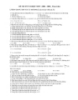 - II. PHẦN RIÊNG (8 câu) Thí sinh học theo chương trình nào chỉ được làm phần dành riêng cho chương trình đó (phần A hoặc phần B) A. Theo chương trình Chuẩn (8 câu, từ câu 33 đến câu 40) 33. Con lắc đ ơn chiều d ài l dao động điều ho à với chu kì m k A. T = 2 B. T = 2 k m g l D. T = 2 C. T = 2 l g 34. Trong thí nghiệm tạo vân giao thoa sóng trên mặt nước, người ta dùng nguồn dao động có tần số 100 Hz và đo được khoảng cách giữa hai gợn sóng liên tiếp nằm trên đường nối hai tâm dao động là 4 mm. Vận tốc sóng trên mặt nước là bao nhiêu ? A. v = 0,2 m/s B. v = 0,4 m/s. C. v = 0,6 m/s. D. v = 0,8 m/s. 35. Mạch dao động LC gồm cuộn cảm có độ tự cảm L=2mH và t ụ điện có điện dung C = 2pF, (lấy 2 10) Tần số dao động của mạch là A. f = 2,5 Hz B. f = 2,5 MHz C. f = 1 Hz D. f = 1 MHz 36. Một sóng cơ học lan tru yền với vận tốc 320m/s, bước sóng 3,2m. Chu kì của sóng đó là A. T = 0,01 s B. T = 0,1 s C. T = 50 s D. T = 100 s 37. Chọn câu đúng. A. Tia X là sóng điện từ có b ước sóng nhỏ hơn bước sóng của tia tử ngoại. B. Tia X do các vật bị nung nóng ở nhiệt độ cao phát ra. C. Tia X có thể đ ược phát ra từ các đèn điện. D. Tia X có thể xuyên qua tất cả mọi vật. 38. Phát biểu nào sau đây là đúng? A. Phóng xạ là hiện tượng hạt nhân nguyên tử phát ra sóng điện từ. B. Phóng xạ là hiện tượng hạt nhân nguyên tử phát ra các tia , , . C. Phóng xạ là hiện tượng hạt nhân nguyên tử phát ra các tia không nh́n thấy và biến đổi thành hạt nhân khác. D. Phóng xạ là hiện tượng hạt nhân nguyên tử nặng bị phá vỡ thành các hạt nhân nhẹ khi hấp thụ nơtron. 39. Mẫu nguyên tử Bo khác mẫu nguyên tử Rơ-dơ-pho ở đ iểm nào dưới đây? A. Hình d ạng quỹ đạo của các êlectron. B. Lực tương tác giữa êlectron và hạt nhân nguyên tử. C. Trạng thái có năng lượng ổn định. D. Mô hình nguyên tử có hạt nhân. 210 206 40. Chất phóng xạ 84 Po p hát ra tia và biến đổi thành 82 Pb . Biết khối lượng các hạt làmPb = 205,9744 u, mPo = 209,9828 u, m = 4 ,0026 u. Năng lượng toả ra khi một hạt nhân Po phân ră là A. 4,8 MeV. B. 5,4 MeV. C. 5,9 MeV. D. 6,2 MeV. B. Theo chương trình Nâng cao (8 câu, từ câu 41 đến câu 48) 41. Một vật đứng yên có khối lượng m. Theo thuyết tương đ ối hẹp thì khi vật chuyển động, khối lượng của vật A. lớn hơn m B. nhỏ hơn m C. vẫn bằng m D. lớn hơn hoặc nhỏ hơn m tùy thuộc vào chiều vectơ vận tốc của vật 42. Một vật rắn đang quay chậm dần đều quanh một trục cố định xuyên qua vật thì A. tốc độ góc luôn có giá trị không đổi khác không. B. tích tốc độ góc và gia tốc góc là số dương .