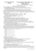 - TRƯỜNG THPT PHÚ RIỀNG ĐỂ THI THỬ TỐT NGHIỆP THPT LẦN 1 TỔ: SINH NĂM HỌC: 2014 - 2015. Môn: SINH HỌC Thời gian làm bài: 90 phút; (50 câu trắc nghiệm) (Thí sinh không được sử dụng tài liệu) Câu 1: Điều không đúng về đặc điểm cấu trúc di truyền của quần thể tự phối là A. qua nhiều thế hệ tự phối các gen ở trạng thái dị hợp chuyển dần sang trạng thái đồng hợp. B. tỉ lệ đồng hợp tăng, dị hợp giảm. C. sự tự phối làm cho quần thể phân chia thành những dòng thuần có kiểu gen khác nhau. D. làm giảm thể đồng hợp trội, tăng tỉ lệ thể đồng hợp lặn, triệt tiêu ưu thế lai, sức sống giảm. Câu 2: Cho cá thể mắt đỏ thuần chủng lai với cá thể mắt trắng được F1 đều mắt đỏ. Cho con cái F1 lai phân tích với đực mắt trắng được tỉ lệ 3 mắt trắng : 1 mắt đỏ, trong đó mắt đỏ đều là con đực. Kết luận nào sau đây là đúng: A. Màu mắt di truyền theo tương tác bổ sung. P: ♂AAXBXB x ♀ aaXbY. B. Màu mắt di truyền theo tương tác bổ sung. P: ♀ AAXBXB x ♂ aaXbY. C. Màu mắt di truyền theo trội hoàn toàn. P: ♀XAXA x ♂ XaY. D. Màu mắt di truyền theo trội hoàn toàn. P: ♂ XAXA x ♀ XaY. Câu 3: Liệu pháp gen là A. chuyển gen mong muốn từ loài này sang loài khác để tạo giống mới. B. chữa trị các bệnh di truyền bằng cách phục hồi chức năng của các gen bị đột biến C. phục hồi chức năng bình thường của tế bào hay mô, phục hồi sai hỏng di truyền. D. nghiên cứu các giải pháp để sửa chữa hoặc cắt bỏ các gen gây bệnh ở người. Câu 4: Quần thể giao phối được xem là đơn vị tổ chức, đơn vị sinh sản của loài trong tự nhiên vì: A. Trong quần thể giao phối, các cá thể giao phối tự do với nhau và được cách li ở mức độ nhất định với các nhóm cá thể lân cận cũng thuộc loài đó. B. Trong quần thể giao phối có thành phần kiểu gen đặc trưng và ổn định. C. Quần thể giao phối đa dạng thành phần kiểu gen hơn so với quần thể tự phối. D. Quần thể giao phối đa dạng về kiểu hình hơn so với quần thể tự phối. Câu 5: Ở một loài thực vật: gen A qui định tính trạng quả tròn, gen a qui định tính trạng quả bầu dục, gen B qui định tính trạng quả ngọt, gen b qui định tính trạng quả chua (2 gen nằm trên cùng một NST). F1 lai phân tích được tỉ lệ ở con lai 15 cây quả tròn, ngọt : 15 cây quả bầu dục, chua : 5 cây quả tròn, chua : 5 cây quả bầu dục, ngọt. Kiểu gen của F1 và tần số hoán vị là: Ab A. với tần số hoán vị gen 25%. aB Ab B. với tần số hoán vị gen 37,5% . aB AB C. với tần số hoán vị gen 25% . ab AB D. với tần số hoán vị gen 37,5% . ab Câu 6: Tiến hoá nhỏ là quá trình A. hình thành các nhóm phân loại trên loài. B. biến đổi thành phần kiểu gen và tần số alen của quần thể dẫn tới sự hình thành loài mới. C. biến đổi kiểu hình của quần thể dẫn tới sự hình thành loài mới. D. biến đổi thành phần kiểu gen của quần thể dẫn tới sự biến đổi kiểu hình. Câu 7: Điều không đúng về nhiệm vụ của di truyền y học tư vấn là A. cung cấp thông tin về khả năng mắc các loại bệnh di truyền ở đời con của các gia đình đã có bệnh này. B. góp phần chế tạo ra một số loại thuốc chữa bệnh di truyền. C. cho lời khuyên trong việc kết hôn, sinh đẻ. D. cho lời khuyên trong việc đề phòng và hạn chế hậu quả xấu của ô nhiễm môi trường. Câu 8: Tính trạng bạch tạng ở người là tính trạng lặn (do alen a qui định ). Nếu bố và mẹ đều dị hợp tử, họ sinh ra được 4 người con thì khả năng họ có 2 người con bình thường, 2 người con bị bạch tạng vói xác suất là : Trang 1/7 - Mã đề thi 132