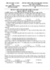 - Câu 36: Đặt điện áp xoay chiều có giá trị hiệu dụng không đổi vào hai đầu đoạn mạch gồm biến trở R mắc nối tiếp với tụ điện. Dung kháng của t ụ đi ện là 100 Ω . Khi điều chỉnh R thì tại hai giá trị R 1 và R2 công suất tiêu thụ của đoạn mạch như nhau. Biết điện áp hiệu dụng giữa hai đầu tụ điện khi R=R 1 bằng hai lần điện áp hiệu dụng giữa hai đầu tụ điện khi R = R2. Các giá trị R1 và R2 là: A. R1 = 50Ω , R2 = 100 Ω . B. R1 = 40Ω , R2 = 250 Ω . C. R1 = 50Ω , R2 = 200 Ω . D. R1 = 25Ω , R2 = 100 Ω . Câu 37: Khi nói về dao động cưỡng bức, phát biểu nào sau đây là đúng? A. Dao động của con lắc đồng hồ là dao động cưỡng bức. B. Biên độ của dao động cưỡng bức là biên độ của lực cưỡng bức. C. Dao động cưỡng bức có biên độ không đổi và có tần s ố b ằng t ần s ố c ủa l ực cưỡng bức. D. Dao động cưỡng bức có tần số nhỏ hơn tần số của lực cưỡng bức. Câu 38: Đặt điện áp xoay chiều u = U 0cosωt có U0 không đổi và ω thay đổi được vào hai đầu đoạn mạch có R, L, C mắc nối tiếp. Thay đổi ω thì cường độ dòng điện hiệu dụng trong mạch khi ω = ω1 bằng cường độ dòng điện hiệu dụng trong mạch khi ω = ω2. Hệ thức đúng là : 2 1 2 1 C. ω1 + ω2 = D. ω1.ω2 = A. ω1 + ω2 = B. ω1.ω2 = . . . . LC LC LC LC Câu 39: Một vật dao động điều hòa theo một trục cố định (mốc thế năng ở vị trí cân bằng) thì A. động năng của vật cực đại khi gia tốc của vật có độ lớn cực đại. B. khi vật đi từ vị trí cân bằng ra biên, vận tốc và gia tốc của vật luôn cùng dấu. C. khi ở vị trí cân bằng, thế năng của vật bằng cơ năng. D. thế năng của vật cực đại khi vật ở vị trí biên. Câu 40: Một đồng vị phóng xạ có chu kì bán rã T. Cứ sau một khoảng th ời gian bằng bao nhiêu thì số hạt nhân bị phân rã trong khoảng th ời gian đó b ằng ba l ần s ố hạt nhân còn lại của đồng vị ấy? A. 0,5T. B. 3T. C. 2T. D. T. II. PHẦN RIÊNG [10 câu] Thí sinh chỉ được làm một trong hai phần (phần A hoặc B) A. Theo chương trình Chuẩn (10 câu, từ câu 41 đến câu 50) Câu 41: Một mạch dao động điện từ LC lí tưởng gồm cuộn cảm thuần độ tự cảm L và tụ điện có điện dung thay đổi được từ C1 đến C2. Mạch dao động này có chu kì dao động riêng thay đổi được. A. từ 4π LC1 đến 4π LC2 . B. từ 2π LC1 đến 2π LC2 C. từ 2 LC1 đến 2 LC2 D. từ 4 LC1 đến 4 LC2 Câu 42: Khi nói về tia hồng ngoại, phát biểu nào sau đây là sai? A. Tia hồng ngoại có bản chất là sóng điện từ. B. Các vật ở nhiệt độ trên 20000C chỉ phát ra tia hồng ngoại. C. Tia hồng ngoại có tần số nhỏ hơn tần số của ánh sáng tím. D. Tác dụng nổi bật của tia hồng ngoại là tác dụng nhiệt.