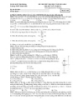 - II. PHẦN RIÊNG (10 câu). Thí sinh chỉ được làm một trong hai phần (phần A hoặc B) A Theo chương trình chuẩn (10 câu, từ câu 41 đến câu 50) Câu 41. Trong cùng một khoảng thời gian, con lắc thứ nhất thực hiện 10 chu kì dao động, con lắc thứ hai thực hiện 6 chu kì dao động. Biết hiệu số chiều d ài dây treo của chúng là 48cm. Chiều d ài dây treo của mỗi con lắc là: A. l1 = 79cm ; l2 = 3 1cm. B. l1 = 9,1cm ; l2 = 57,1cm. C. l1 = 42cm ; l2 = 9 0cm. D. l1 = 27cm ; l2 = 7 5cm. Câu 42. Một vật dao động điều ho à với phương trình x = 2sin2πt cm. Thời điểm đầu tiên vật có vận tốc V=0,5Vmax và chuyển động theo chiều âm là: A. t=1/6s B. t=1/3s C. t=2/3s D. t=0,5s Câu 43. trong một đoạn mạch điện xoay chiều chỉ có cuộn cảm thuần thì hiệu điện thế ở hai đầu đo ạn mạch A. Trễ pha /4 so với cường độ dòng đ iện. B. Sớm pha /4 so với cường độ dòng điện. C. Sớm pha /2 so với cường độ dòng điện. D. Trễ pha /2 so với cường độ dòng đ iện Câu 44. Một chất điểm dao động dọc theo trục Ox. Phương trình dao động là x = sin20t (cm). Vận tốc của chất điểm khi động năng bằng thế năng có độ lớn bằng: A.10 2 cm/s B. 20 cm/s. C. 10 cm/s. D. 4,5 cm/s. Câu 45. Cho m ạch điện xoay chiều RLC, ω thay đ ổi được, khi ω1=50π(rad/s) hoặc ω2= 200π(rad/s) thì công suất của mạch là như nhau. Hỏi với giá trị nào của ω thì trong mạch xảy ra hiện tượng cộng hưởng? A.100π(rad/s); B.150π(rad/s); C.125π(rad/s); 175π(rad/s). Câu 46. Biên độ của dao động cưỡng bức không phụ thuộc: A. Pha ban đầu của ngoại lực tuần hoàn tác dụng lên vật B. Biên độ của ngoại lực tuần hoàn tác dụng lên vật C. Tần số của ngoại lực tuần ho àn tác dụng lên vật D. Hệ số lực cản (của ma sát nhớt) tác dụng lên vật Câu 47. Cho đoạn mạch RL nối tiếp, hiệu điện thế hai đầu đoạn mạch có dạng u 100 2 cos100t (V ) thì biểu thức dòng điện qua mạch là i 2 2 cos(100t 6)( A) . Tìm R,L? 3 1 A. R 25 3 (), L B. R 25(), L ( H ); ( H ); 4 4 1 0,4 C. R 20(), L D. R 30(), L ( H ); ( H ); 4 Câu 48. Trong mạch dao động LC, hiệu điện thế cực đại giữa hai bản tụ là U0, khi cường độ dòng điện trong mạch có giá trị bằng 1/4 giá trị cực đại thì hiệu điện thế giữa hai bản tụ là A B C D x Câu 49. Một sóng dừng trên một sợi dây có dạng u 4 sin( ) cos 20t (cm) , trong đó u là li độ 3 dao động tại thời điểm t của một phần tử trên dây mà vị trí cân bằng của nó cách gốc toạ độ O một đoạn x(m). Vận tốc truyền sóng trên dây là A. 60cm/s B. 40m/s C. 30cm/s D. 60m/s Câu 50. Một máy phát điện ba pha mắc hình sao có hiệu điện thế pha Up =220V và tần số 50Hz. Người ta đưa dòng ba pha vào ba tải như nhau mắc h ình sao, mỗi tải có điện trở thuần 100Ω và độ tự cảm 0,318H. Tính cường độ dòng đ iện qua các tải và tính công su ất do các tải tiêu thụ. A. 1,56A và 726W B. 2,2A và 1452W C. 1A và 300W D. 1,56A và 242W -6-