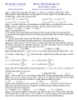 - A. 6 mm B. 4mm C. 8mm D. 2mm Câu 10: Cho phản ứng hạt nhân: 1T + 1 D 0 n + a . Biết độ hụt khối của các hạt nhân Triti 3 2 1 MeV ∆ m1= 0,0087(u), Đơtơri ∆ m2 = 0,0024(u), hạt α ∆ m3 = 0,0305(u). Cho 1(u) = 931 ( ) năng c2 lượng tỏa ra từ phản ứng trên là : A. 18,06(MeV) B. 38,72(MeV) C. 16,08(MeV) D. 20,6 (MeV) Câu 11: Một nguồn sóng cơ dao động với biên độ không đổi, tần số dao động 100Hz. Hai điểm MN= 0,5m gần nhau nhất trên phương truyền sóng luôn dao động vuông pha với nhau. Vận tốc truyền sóng là A. 50m/s B. 200m/s C. 150m/s D. 100m/s Câu 12: Một con lắc lò xo đặt nằm ngang gồm vật m=1kg và lò xo có đ ộ c ứng k=100N/m. Từ vị trí cân bằng truyền cho vật vận tốc 100cm/s. Chọn gốc toạ độ tại vị trí cân bằng, gốc thời gian lúc vật cách vị trí cân bằng 5cm và đang chuyển động về vị trí cân bằng theo chiều dương. Phương trình dao động của vật là π π A. x = 5cos( 10t + B. x = 10 cos ( 10t − ) cm ) cm 6 6 π π C. x = 5 cos (10t − ) cm D. x = 10 cos ( 10t + ) cm 6 6 HiÖu ®iÖn thÕ gi÷a hai cùc cña èng R¬nghen lµ 15kV .Gi¶ sö ªlectr«n bËt ra tõ Catèt cã Câu 13: vËn tèc ban ®Çu b»ng kh«ng th× bíc sãng ng¾n nhÊt cña tia X mµ èng cã thÓ ph¸t ra lµ : C 75,5.10−12 m A. 82,8.10−10 m 75,5.10−10 m D. 82,8.10−12 m B . Câu 14: Trong mạch dao động tự do LC có cường độ dòng điện cực đại là I 0. Tại thời điểm t khi dòng điện có cường độ i, hiệu điện thế hai đầu tụ điện là u thì: C2 L2 12 A. I 02 − i 2 = B. I 02 − i 2 = D. I 02 − i 2 = u C. I 0 − i 2 = LCu 2 2 u u L C LC Câu 15: Thân thể con người ở nhiệt độ 370C phát ra bức xạ nào trong các bức xạ sau đây? A. Bức xạ nhìn thấy B. Tia tử ngoại C. Tia Rơnghen D. Tia hồng ngoại Câu 16: Trong thí nghiệm giao thoa ánh sáng đơn sắc của Iâng khoảng vân giao thoa là i, nếu đưa toàn bộ thí nghiệm vào trong chất lỏng trong suốt có chiết suất n thì khoảng vân sẽ là A. i/(n+1) B. ni C. i/n D. i/(n-1) Câu 17: Một con lắc lò xo dao động điều hoà . Nếu tăng độ cứng lò xo lên 2 lần và gi ảm khối lượng đi hai lần thì cơ năng của vật sẽ A. không đổi B. tăng bốn lần C. tăng hai lần D. giảm hai lần Câu 18: Một chất phóng xạ có khối lượng m0, chu kì bán rã T. Hỏi sau thời gian t = 4T thì khối lượng bị phân rã là: m0 m0 15m0 31m0 A. B. C. D. 32 16 16 32 Câu 19: Hai nguồn sóng cơ dao động cùng tần số, cùng pha .Quan sát hiện tượng giao thoa thấy trên đoạn AB có 5 điểm dao động với biên độ cực đ ại (k ể c ả A và B). S ố đi ểm không dao động trên đoạn AB là A. 4 điểm B. 2 điểm C. 5 điểm D. 6 điểm Câu 20: . Cuộn thứ cấp của một máy biến thế có 1000 vòng. Từ thông xoay chi ều trong lõi biến thế có tần số 50Hz và giá trị cực đại là 0,5mWb. Su ất đi ện đ ộng hi ệu d ụng c ủa cu ộn sơ cấp là: A. 500V B. 157V C. 111V D. 353,6V