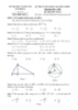 - www.VNMATH.com Câu 8: Một hình trụ có chiều cao bằng hai lần đường kính đáy. Nếu đường kính đáy có chiều dài bằng 4cm thì thể tích của hình trụ đó bằng A. 16 cm3 ; B. 32 cm3 ; C. 64 cm3 ; D. 128 cm3 . Phần II. Tự luận (8,0 điểm) Bài 1: (1,5 điểm) 1. Rút gọn các biểu thức sau : a) M 3 50 5 18 3 8 2 b) N 6 2 5 6 2 5 2. Cho đường thẳng (d): y = 4x – 3 và parabol (P): y = x2. Tìm tọa độ giao điểm của (d) và (P) bằng phép toán. Bài 2. (2,5 điểm) 3x 5 x 2 1. Giải bất phương trình: x 2 3 x 2y m 3 2. Cho hệ phương trình: (I) (m là tham số) 2x 3y m a) Giải hệ phương trình (I) khi m = 1. b) Tìm m để hệ (I) có nghiệm duy nhất (x ; y) thỏa mãn x + y = -3. 3. Một khu vườn hình chữ nhật có chiều dài lớn hơn chiều rộng 3m và diện tích bằng 270m2. Tìm chiều dài, chiều rộng của khu vườn. Bài 3. (3,0 điểm) Cho tam giác nhọn ABC nội tiếp đường tròn (O), các đường cao AD, BE, CF cắt nhau tại H (D BC, E AC, F AB) 1. Chứng minh các tứ giác BDHF, BFEC nội tiếp. 2. Đường thẳng EF cắt đường tròn (O) tại M và N (F nằm giữa M và E). Chứng minh AM AN . 3. Chứng minh AM là tiếp tuyến của đường tròn ngoại tiếp tam giác MHD. Bài 4. (1,0 điểm) 1. Cho x, y là các số dương. Chứng minh rằng: xy2 x y 2 0 . Dấu “=” xảy ra khi nào ? 2. Tìm cặp số (x;y) thỏa mãn 1 1 x 2 y2 x y x y 1 với x , y 4 4 ---------------Hết--------------- Trang 2
