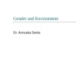 Lecture Gender and Environment of Dr. Annuska Derks presented: What is Gender?, Emergence of "Women and Environment", Women and Environmental Degradation, Why "gender and environment".