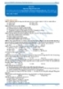 - Khóa học LTĐH KIT-2: Môn Hoá học (Thầy Phạm Ngọc Sơn) Đề số 01 Câu 25: Tổng số hạt cơ bản trong nguyên tử nguyên tố X là 58. Số hạt mang điện trong nguyên tử nguyên tố Y nhiều hơn trong X là 8. Vị trí của X và Y trong bảng tuần hoàn lần lượt là A. chu kì 4, nhóm IA và chu kì 4 nhóm VB. B. chu kì 3, nhóm IIA và chu kì 4 nhóm VIIA. C. chu kì 3, nhóm IIA và chu kì 4 nhóm VB. D. chu kì 4, nhóm IA và chu kì 4 nhóm VIIIA. Câu 26: Nung 1,92 gam hỗn hợp gồm Fe và S trong bình kín không có không khí, sau một thời gian thu được chất rắn Y. Hòa tan hết Y trong dung dịch HNO3 đặc, nóng, dư thu được dung dịch Z và khí V lít khí thoát ra (đktc). Cho Z tác dụng với dung dịch BaCl2 dư thu được 5,825 gam kết tủa. Giá trị của V là: A. 1,568. B. 4,704. C. 3,136. D. 1,344. Câu 27: Mệnh đề nào sau đây là sai ? A. Phản ứng nhị hợp axetilen thành vinylaxetilen không phải là phản ứng oxi hóa khử. B. Phân biệt propan-1,2-điol và propan-1,3-điol ta cho các chất phản ứng với dung dịch Cu(OH)2/OH-. C. Phân tử propan có 20 electron tham gia tạo liên kết. D. Để phân biệt phenol và ancol benzylic ta cho các chất phản ứng với dung dịch brom Câu 28: Tổng số proton trong hạt nhân nguyên tử X và Y là 25. Y thuộc nhóm VIIA. Ở dạng đơn giản đơn chất X tác dụng với Y. Khẳng định nào sau đây đúng? A. Ở trạng thái cơ bản X có 2 electron độc thân. B. Công thức oxit cao nhất của X là X2O. C. X là kim loại, Y là phi kim. D. Công thức oxit cao nhất của Y là Y2O7. Câu 29: Cho 150 ml dung dịch Ba(OH)2 1M vào 250 ml dung dịch Al2(SO4)3 xM được 42,75 gam kết tủa. Thêm tiếp 200 ml dung dịch Ba(OH)2 1M vào hỗn hợp phản ứng thì lượng kết tủa thu được là 94,2375 gam. Giá trị của x là A. 0,25. B. 0,43. C. 0,3. D. 0,45. Câu 30: Cho hỗn hợp chứa 5,6 gam Fe và 6,4 gam Cu vào 100 ml dung dịch AgNO3 xM. Sau khi các phản ứng xảy ra hoàn toàn thu được dung dịch chứa 3 muối. Giá trị của x là A. 2,5. B. 4,5. C. 5,0. D. 3,5 Câu 31: Đốt cháy hết m gam cacbon trong V lít không khí (chứa 80% N2, còn lại O2) vừa đủ, thu được hỗn hợp khí X. Cho X đi qua ống CuO dư, đun nóng, kết thúc phản ứng thu được hỗn hợp khí Y. Dẫn khí Y lội chậm qua bình đựng dung dịch Ba(OH)2 dư, thấy có 0,4 mol kết tủa xuất hiện và 1,2 mol khí không bị hấp thụ. Giá trị của m và V lần lượt là (các khí được đo ở đktc, các phản ứng xảy ra hoàn toàn) A. 2,4 và 16,8. B. 2,4 và 33,6. C. 4,8 và 33,6. D. 4,8 và 16,8. Câu 32: Đốt cháy hoàn toàn 0,15 mol hỗn hợp X gồm một axit hữu cơ A và một este B (B hơn A một nguyên tử cacbon trong phân tử) thu được 0,2 mol CO2. Vậy khi cho 0,2 mol X tác dụng hoàn toàn với AgNO3/NH3 dư thì khối lượng bạc thu được là A.16,2 gam. B. 21,6 gam. C. 43,2 gam. D. 32,4 gam. Câu 33: Trộn một thể tích H2 với một thể tích anken X thu được hỗn hợp Y có thỉ khối so với H2 là 11. Cho Y vào bình kín có chứa sẵn một ít bột Ni thể tích không đáng kể. Nung bình một thời gian rồi đưa về nhiệt độ ban đầu thì thu được hỗn hợp Z có tỉ khối so với H2 là 55/3. Phần trăm khối lượng của ankan trong Z là: A. 66,67. B. 50. C. 60. D. 80. Câu 34: Cho 0,01 mol amino axit X tác dụng vừa đủ với 200ml dung dịch HCl 0,1M thu được 2,19 gam muối khan. Công thức của X là: A.(H2N)2C5H9COOH. B. H2NC5H9(COOH)2. C. (H2N)2C2H4(COOH)2. D. (H2N)2C4H7COOH. Câu 35: Nung m gam hỗn hợp X gồm Al và Fe3O4 trong bình kín không có không khí đến khi phản ứng xảy ra hoàn toàn thu được hỗn hợp rắn Y. Chia Y thành hai phần bằng nhau. Phần (1) cho tác dụng với dung dịch HNO3 loãng, dư thu được 0,11 mol NO (sản phẩm khử duy nhất). Phần (2) cho tác dụng với dung dịch NaOH dư thu được 0,03 mol H2. Giá trị m là A.19,59. B. 19,32. C. 9,93. D. 9,66. Câu 36: Số liên kết đơn có trong axit cacboxylic CnH2nO2 là A. 2n + 2. B. 3n – 4. C. 2n. D. 3n. Hocmai.vn – Ngôi trường chung của học trò Việt Tổng đài tư vấn: 1900 58-58-12 - Trang | 3 -