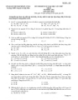 - xt) thì các chất trong hỗn hợp phản ứng vừa đủ với nhau tạo thành 13,08 gam este (gi ả thi ết các ph ản ứng este hoá xảy ra như nhau và đạt hiệu suất 60%). Hai axit cacboxylic trong hỗn hợp là A. HCOOH & CH3COOH. B. C2H5COOH & C3H7COOH. C. C3H7COOH & C4H9COOH. D. CH3COOH & C2H5COOH Câu 12: Cho các dung dịch: dd Ba(OH)2; dd Ba(NO3)2; nước brom; dd KMnO4; dd NaOH; dd HNO3 đặc. Số dung dịch có thể dùng để nhận biết được ngay SO2 và SO3 (coi cả 2 ở thể hơi) là A. 4 B. 6 C. 3 D. 5 Câu 13: Người ta có thể sát trùng bằng dung dịch muối ăn NaCl, chẳng hạn như hoa quả tươi, rau sống được ngâm trong dung dịch NaCl từ 10 - 15 phút. Khả năng diệt khuẩn của dung dịch NaCl là do: A. dung dịch NaCl có thể tạo ra ion Cl- có tính khử. B. dung dịch NaCl độc. C. vi khuẩn bị mất nước do thẩm thấu. D. dung dịch NaCl có thể tạo ra ion Na+ có tính oxi hóa. Câu 14: Cho các chất sau: phenol, axit axetic, phenylamoni clorua, natri phenolat, NaOH. Cho các ch ất đó tác dụng với nhau từng đôi một, số cặp xảy ra phản ứng hóa học là A. 4. B. 6. C. 5. D. 3. Câu 15: Dung dịch Z có chứa 1,8g hỗn hợp 2 muối NaX và NaY (X, Y là 2 nguyên tố halogen thuộc 2 chu kì liên tiếp). Cho dung dịch Z tác dụng vừa đủ với V ml dung dịch AgNO3 0,15 M, sau phản ứng có 3,731 gam kết tủa. V là: A. 1,7333 .B. 203,725 .C. 173,333 D. 2,0373 Câu 16: Cho a gam Sn vào dung dịch HCl (dư) thu được V 1 lít H2 (ở 0 C; 0,5 atm). Cũng cho a gam Sn o vào dung dịch HNO3 đặc, nóng (dư) thu được V2 lít NO2 (là sản phẩm khử duy nhất, ở đktc). Sự liên hệ giữa V1 với V2 là A. V1 = 4V2 B. V2 = 2V1 C. V2 = 4V1 D. V2 = 8V1 Câu 17: Oxi hoá m gam etanol thu được hỗn hợp X gồm axetanđehit, axit axetic, nước và etanol dư. Cho toàn bộ X tác dụng với dung dịch NaHCO 3 (dư), thu được 0,56 lít khí CO2 (ở đktc). Khối lượng etanol đã bị oxi hoá tạo ra axit là A. 1,15 gam. B. 5,75 gam. C. 2,30 gam. D. 4,60 gam. Câu 18: Monome nào dưới đây đã dùng để tạo ra polime sau CH2 CH CO OCH3 n A. etyl axetat. B. metyl axetat. C. etyl acrylat. D. metyl acrylat. Câu 19: Từ tinh bột người ta có thể thu được ancol etylic bằng quá trình hai giai đo ạn, v ới hi ệu su ất của mỗi giai đoạn đạt 75%. Vậy, từ 27 kg tinh bột lo ại có chứa 20% t ạp chất ng ười ta có th ể thu đ ược V lít ancol 25o. Giá trị của V là (cho khối lượng riêng của ancol etylic nguyên chất là 0,8 g/ml) A. 34,5 lít. B. 38,5 lít. C. 35,5 lít. D. 39,5 lít. Câu 20: Cho số hiệu nguyên tử của các nguyên tố H(Z = 1), B(Z = 5); C(Z = 6), N(Z = 7, O(Z = 8), Al(Z = 13), P(Z = 15), S(Z = 16). Nhóm hợp chất nào không tuân theo quy tắc bát tử? A. H2O2, CS2, P2O5 B. CO2, CH4, HNO3 C. BH3, NO, PCl5 D. C2H4, CO2, PCl3 Câu 21: Một nguyên tố R có 2 đồng vị có tỉ lệ số nguyên tử là 27/23. Hạt nhân c ủa R có 35 h ạt proton. Đồng vị thứ nhất có 44 hạt nơtron, đồng vị thứ hai có số khối nhi ều h ơn đ ồng v ị th ứ nh ất là 2. Nguyên tử khối trung bình của nguyên tố R là bao nhiêu? A. 81. B. 80,5. C. 79,92. D. 80,08. Câu 22: Cho sơ đồ biến hoá: CH 4 CH 3COOH. Để thoả mãn với sơ đồ A B D biến hoá trên thì nên chọn B là (các điều kiện phản ứng có đủ) A. CH3COOCH=CH2. B. C2H3Cl. C. C2H4Cl2. D. C2H4. Câu 23: Iot có thể tan tốt trong dung dịch KI, do có phản ứng hóa h ọc thu ận ngh ịch t ạo ra s ản ph ẩm KI3. Lấy khoảng 1ml dung dịch KI3 không màu vào ống nghiệm rồi thêm vào đó 1ml benzen (C 6H6) cũng không màu, lắc đều sau đó để lên giá ống nghiệm. Sau vài phút, hiện tượng quan sát được là: A. Các chất lỏng bị tách thành hai lớp, lớp trên không màu, lớp phía dưới có màu tím đen. B. Các chất lỏng bị tách thành hai lớp, cả hai lớp đều không màu. C. Các chất lỏng hòa tan vào nhau thành một hỗn hợp đồng nhất. Trang 2/5 - Mã đề thi 101