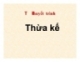 - 1. Thừa kế là gì? - Thừa kế được hiểu là tiếp tục, tiếp nối - Thừa kế là một chế định PL dân sự, bao gồm các QPPL điều chỉnh - Thừa kế là sự chuyển dịch tài sản ( quyền sở hữu) của người chết cho những người cịn sống theo di chúc hoặc theo pháp luật. - Thừa kế là sự chuyển dịch quyền sở hữu bằng hai phương thức khác nhau: Thứ nhất là sự định đoạt theo ý nguyện cuối cùng của người để lại thừa kế theo di chúc ; thứ hai là theo quy định của pháp luật.