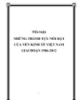 - Nông nghiệp là ngành kinh tế quan trọng của Việt Nam, thường tạo ra trên 40% tổng sản phẩm xã hội và khoảng 50% thu nhập quốc dân. Sự phát triển của ngành nông nghiệp tương đối vững chắc, đặc biệt là sản xuất lương thực. Giá trị sản xuất nông nghiệp tiếp tục tăng qua các năm: 1991 1992 1993 1994 1995 1996 1997 1998 1999 2,9% 8,4% 6,7% 4,9% 6,6% 5,1% 7,0% 3,9% 7,1% Kết quả quan trọng nhất trong nông nghiệp lá sản xuất lương thực, vấn đ ề an toàn lương thực mới được khẳng định và sản lượng hang năm không chỉ cao hơn 21,0 triệu tấn đề ra từ năm 1980 mà còn thường xuyên tăng lên với mức bình quân mỗi năm trên 1,2 triệu tấn trong suốt 9 năm 1991 – 1999.day là thời kỳ sản l ượng l ương thực tăng ổn định nhất có mức tăng bình quân/ năm và tốc độ tăng tr ưởng cao nhất kể từ 1975 đến nay. Năm 1999, cả nước có khoảng 113000 trang trại, khai thác gần 30000000 ha đ ất trống đồi trọc và hoang hóa.Số vốn các trang trại đầu tư lên đến 20000tỷ đồng, giải quyết việc làm hơn 40.000 lao động, kinh tế trang trại hàng năm tạo ra giá trị tổng sản phẩm gần 12000 tỷ đồng, chiếm 10% sản lượng nông nghiệp. Tốc độ phát triển chung nông – lâm – ngư nghiệp tăng 4,1% trong đó nông nghiệp 5,6%; lâm nghiệp 0,4% , ngư nghiệp 8,4%. 1.3.2.2 Công nghiệp. Thành tựu đạt được trong công nghiệp, xây dựng đã đạt được nhiều tiến bộ. Giá trị sản xuất công nghiệp tăng bình quân hàng năm 13,5% trong đó: công nghiệp quốc doanh tăng 9,5%; ngoài quốc doanh tăng 11,5%; khu vực vốn đầu tư nước ngoài tăng 21,8%. Các ngành dịch vụ tiếp tục phát triển góp phần tích cực cho tăng trưởng kinh tế và phục vụ đời sống. Thương mại tăng trưởng khá, đảm bảo lưu chuyển cung ứng vật tư hang hóa trong cả nước và trên từng vùng. 1.3.2.3 Thương mại Những năm qua nhờ chính sách đổi mới, hàng hóa sản xuất trong nước dồi dào, nguồn hàng nhập khẩu cũng rất phong phú, nhiều thành phần kinh tế đã đ ược nhà 14