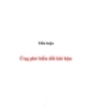 - khí hậu của Việt Nam là một việc làm cấp thiết trong thời gian tới. Nhằm giúp các bạn có cách nhìn bao quát hơn về nguy cơ biến đổi khí hậu toàn cầu, từ đó đưa ra các khuyến nghị và phương án hợp lý nhằm thích ứng và đối phó với xu thế này nhóm chúng tôi đã thực hiện bài tiểu luận này. II. NỘI DUNG I. Thực trạng biến đổi khí hậu tại Việt Nam. Vấn đề biến đổi khí hậu ở Việt Nam biểu hiện qua một số vấn đề chính sau: 1.Vấn đề nhiệt độ: Trong khoảng 50 năm qua (1951 - 2000), nhiệt độ trung bình năm (TBN) ở Việt Nam đã tăng lên 0,7oC. Nhiệt độ TBN của thập kỷ 1991 – 2000 ở Hà Nội, Đà Nẵng, TP. Hồ Chí Minh đều cao hơn trung bình (TB) của thập kỷ 1931 – 1940 lần lượt là 0,8; 0,4 và 0,6oC. Năm 2007, nhiệt độ TBN ở cả 3 nơi trên đều cao hơn TB của thập kỷ 1931 – 1940 là 0,8 – 1,3oC và cao hơn thập kỷ 1991 – 2000 là 0,4 – 0,5oC. Như vậy có thể thấy là nhiệt độ qua mỗi thời k ỳ ở nước ta đều tăng lên. Và dự báo sẽ tiếp tục tăng cao hơn vào những năm tiếp theo. 2.Vấn đề nước biển dâng: Theo số liệu quan trắc trong khoảng 50 năm qua ở các trạm Cửa Ông và Hòn Dấu cho thấy, mực nước biển trung bình đã tăng lên khoảng 20cm. Điều này dẫn đến sự xâm nhập mặn ngày càng lớn. Năm 2005, tình trạng xâm nhập mặn sớm, xâm nhập sâu, độ mặn cao và thời gian duy trì dài xảy ra phổ biến ở làm các tỉnh đồng bằng sông Cửu Long. Trên sông Tiền, sông Hàm Luông, sông Cổ Chiên mức độ nhập mặn đã tiến sâu vào phạm vi 60–80 km. Còn trên tuyến sông Hậu, nhập mặn cũng vào sâu 60– 70 km. Riêng các dòng sông chính như Vàm Cỏ Tây, Vàm Cỏ Đông độ mặn đã xâm nhập sâu tới mức kỷ lục 120-140km. Tại Long An, thiệt hại lên tới 16 tỷ đồng, 14.693 ha mía của tỉnh giảm năng suất từ 5–10%; 1.093 hecta lúa ở huyện Đức Hòa đã chết trắng, do bị nhiễm mặn. Tỉnh Sóc Trăng thiệt hại 46 tỷ đồng do 16.500 ha bị hạn, mặn...Hậu Giang có diện tích nhập mặn là 9.000 ha, thiệt hại 11,4 tỷ đồng. Tại các huyện Cần Đước, Cần Giuộc 3