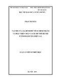 Luận án được thực hiện cứu với mục đích để nghiên cứu thực trạng nhu cầu được bảo vệ của trẻ em lang thang và một số yếu tố ảnh hưởng đến nhu cầu được bảo vệ của trẻ em lang thang tại một số thành phố lớn ở nước ta, trên cơ sở đó kiến nghị một số giải pháp nhằm bảo vệ cho nhóm trẻ em này. Mời các bạn cùng tham khảo.
