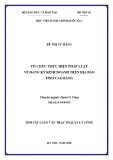 ục đích nghiên cứu đề tài là làm rõ thêm cơ sở lý luận về tổ chức thực hiện pháp luật về ĐKKD. Đánh giá thực trạng tổ chức thực hiện pháp luật về ĐKKD trên địa bàn tỉnh Cao Bằng, chỉ ra những ưu điểm, hạn chế và nguyên nhân. Đề xuất một số giải pháp nhằm bảo đảm tổ chức thực hiện pháp luật về ĐKKD trên địa bàn tỉnh Cao Bằng.